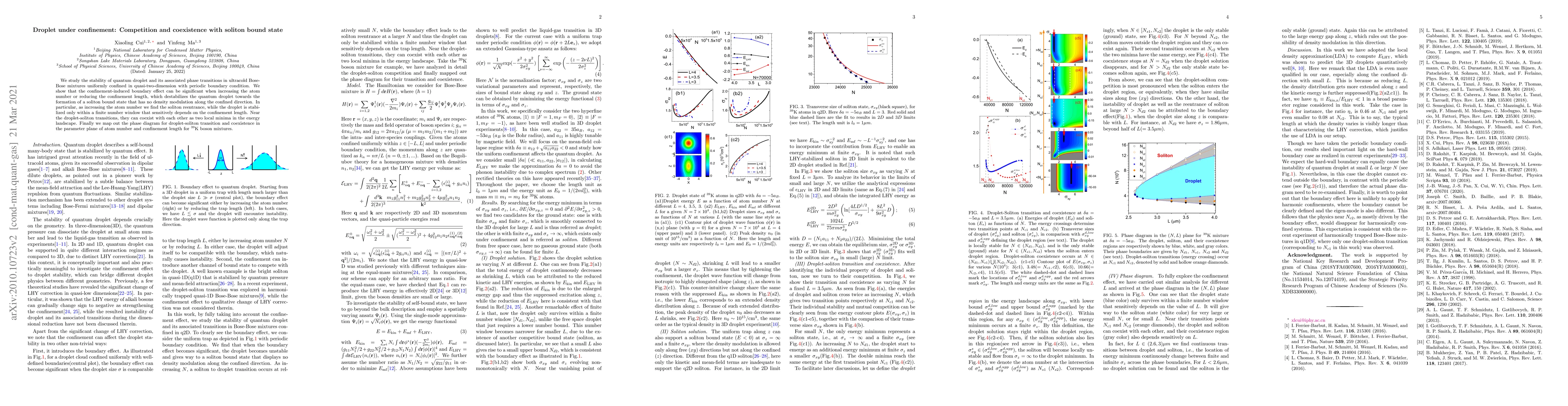 Researchers study the stability of quantum droplets in ultracold Bose-Bose mixtures under confinement, finding that increasing atom number or reducing confinement length can lead to soliton bound states.