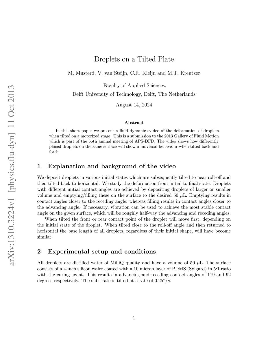 In this short paper we present a fluid dynamics video of the deformation of droplets when tilted on a motorized stage. This is a submission to the 2013 Gallery of Fluid Motion which is part of the 66th annual meeting of APS-DFD. The video shows how differently placed droplets on the same surface will show a universal behaviour when tilted back and forth.