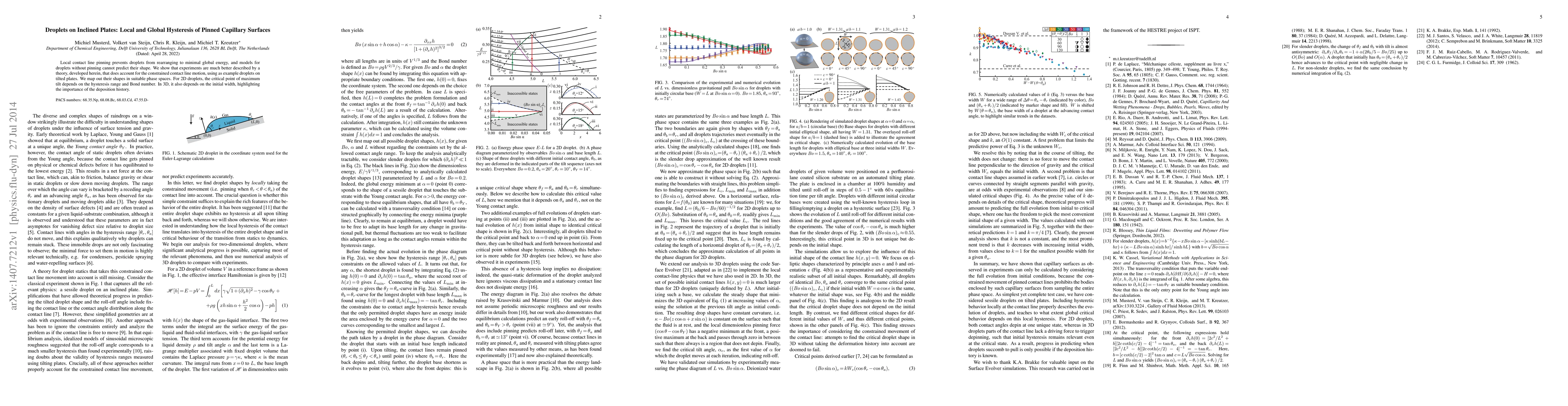 This research reveals a theory that accurately predicts droplet shapes on inclined surfaces, considering constrained contact line motion. It highlights the impact of hysteresis range, Bond number, and deposition history on droplet behavior in both 2D and 3D scenarios.