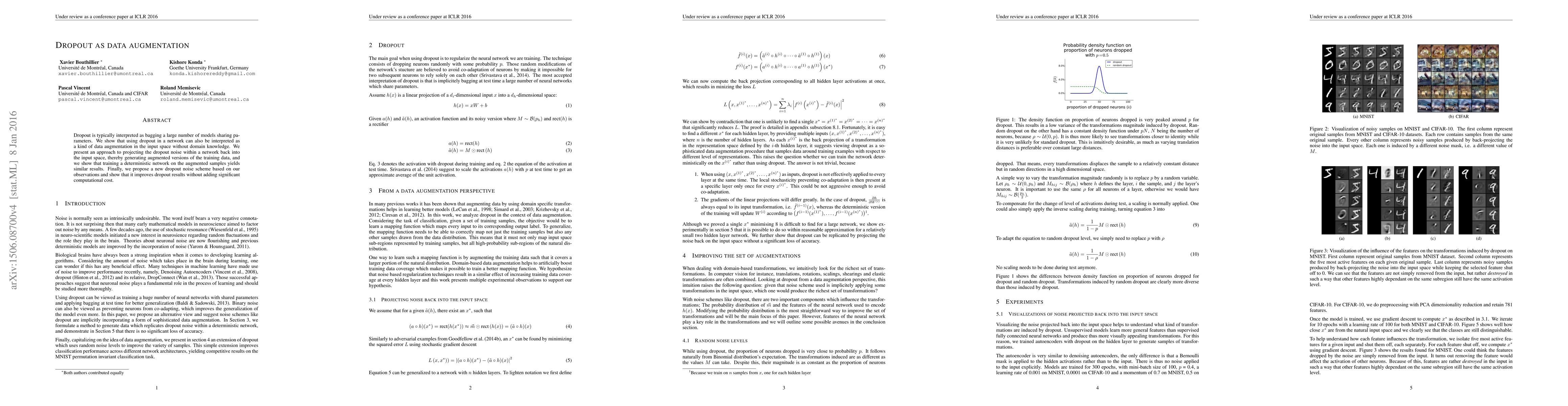 This paper reinterprets dropout as a form of data augmentation, demonstrating how dropout noise can be projected back into the input space to generate augmented training data. The authors propose a new dropout noise scheme that enhances results without significant computational overhead.
