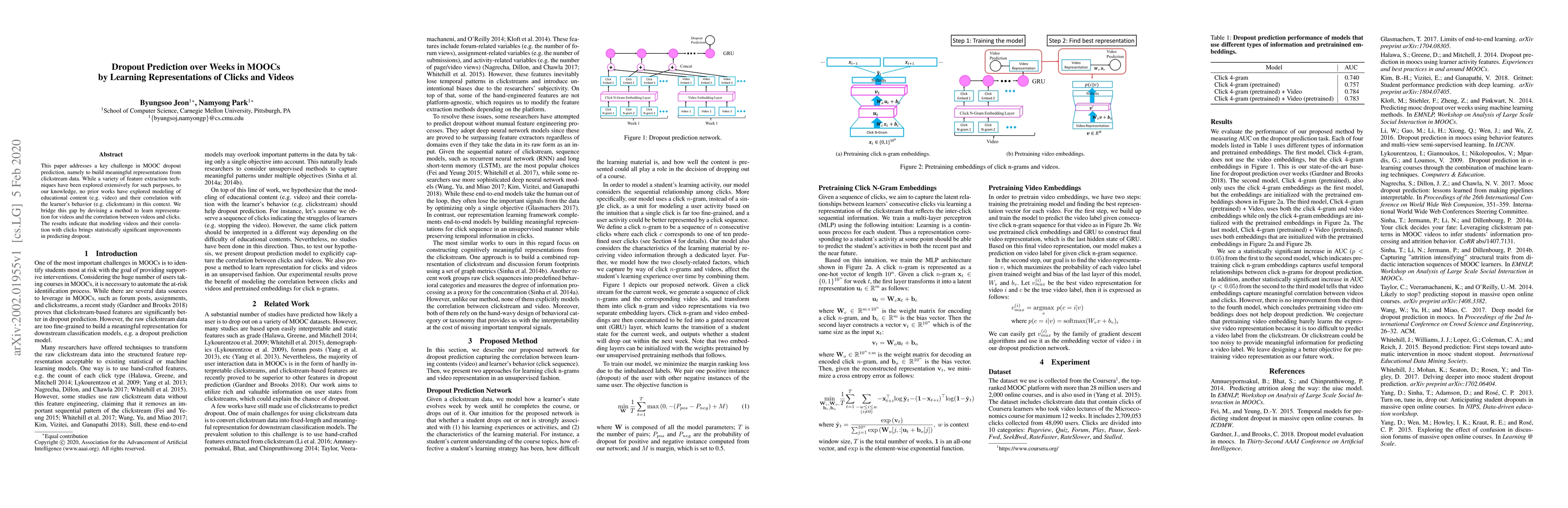 This paper addresses a key challenge in MOOC dropout prediction, namely to build meaningful representations from clickstream data. While a variety of feature extraction techniques have been explored extensively for such purposes, to our knowledge, no prior works have explored modeling of educational content (e.g. video) and their correlation with the learner's behavior (e.g. clickstream) in this context. We bridge this gap by devising a method to learn representation for videos and the correlation between videos and clicks. The results indicate that modeling videos and their correlation with clicks bring statistically significant improvements in predicting dropout.