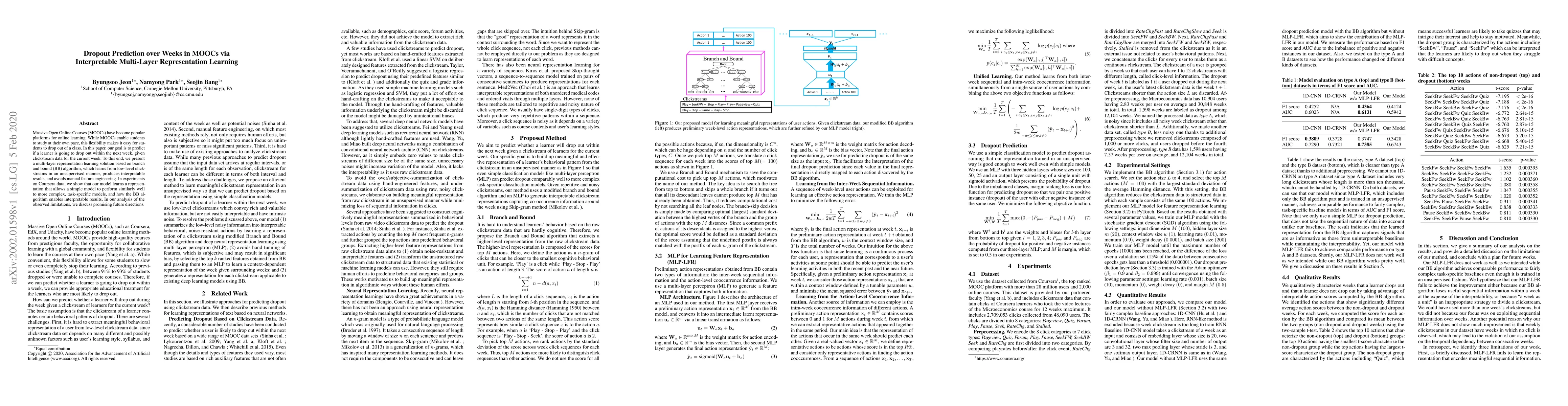 This paper presents a method to predict MOOC dropout within a week using clickstream data, achieving comparable performance to more complex models through interpretable multi-layer representation learning. The approach uses the branch and bound algorithm to learn from low-level data without manual feature engineering.