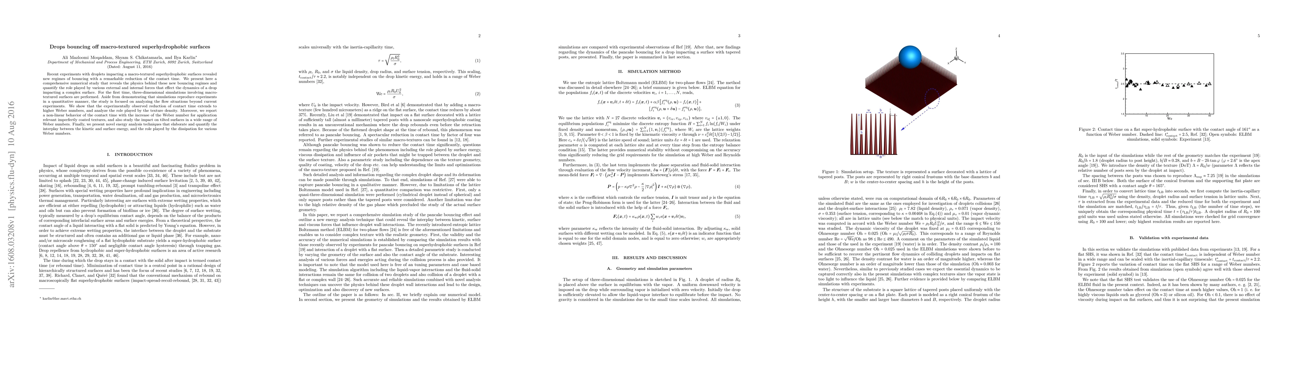 This research uses 3D simulations to explore the dynamics of droplets impacting macro-textured superhydrophobic surfaces, revealing reduced contact times and new bouncing regimes. It quantifies the effects of various forces and texture density, demonstrating non-linear behavior with increasing Weber numbers and analyzing impacts on tilted surfaces.