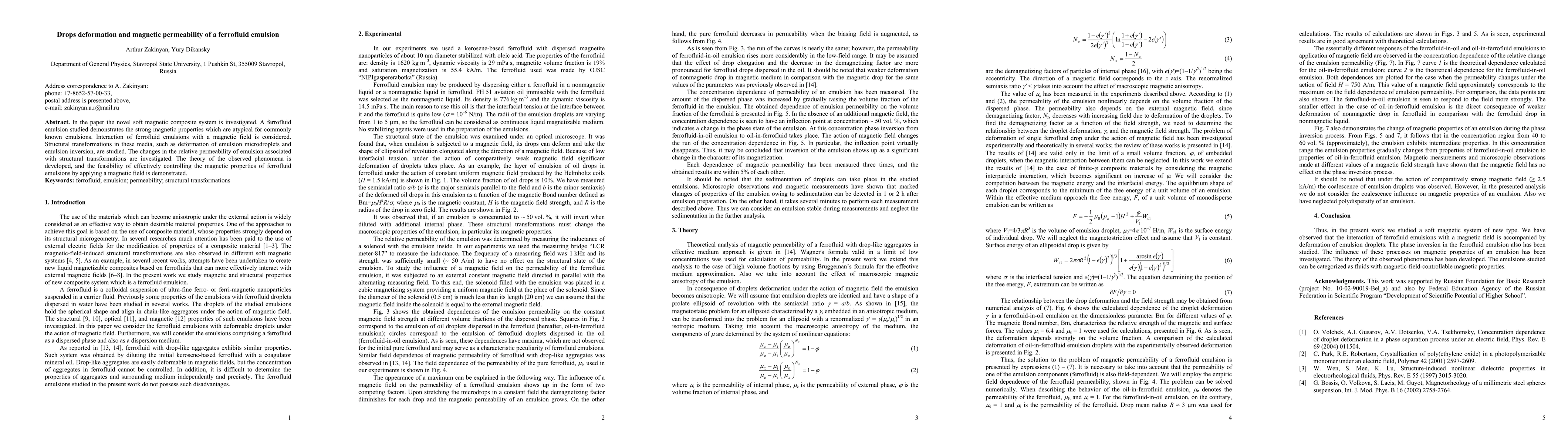 This paper investigates the deformation and magnetic permeability of a novel ferrofluid emulsion under a magnetic field, revealing its atypical strong magnetic properties. The study demonstrates structural transformations and changes in relative permeability, developing a theory to control the magnetic properties of these emulsions effectively.