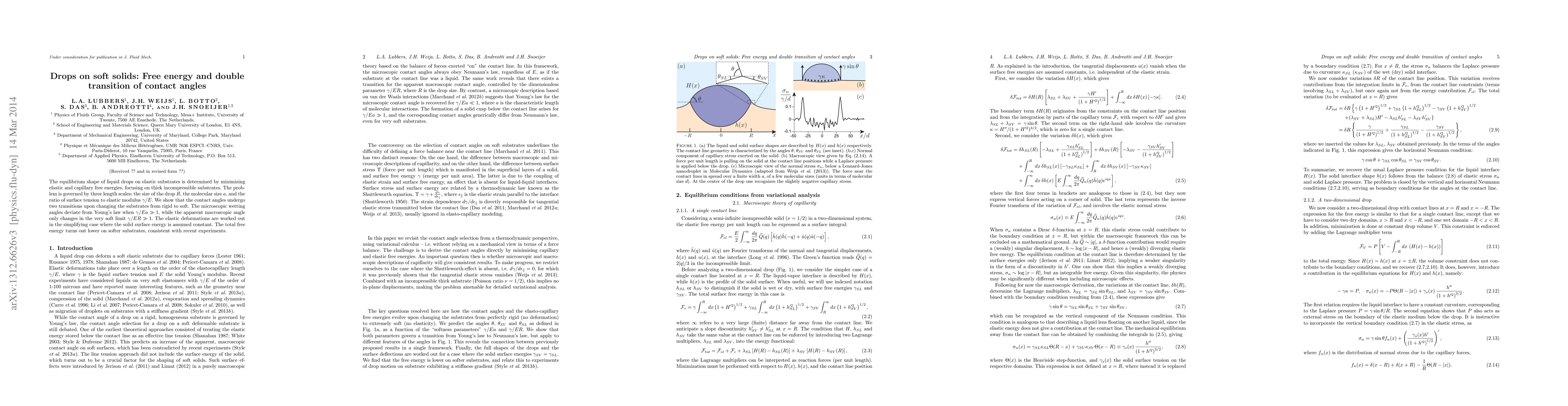 This study investigates the equilibrium shapes of liquid drops on elastic substrates, revealing two transitions in contact angles due to varying substrate stiffness. It demonstrates that microscopic wetting angles deviate from Young's law at high surface tension-to-elastic modulus ratios, while macroscopic angles change only in very soft substrates, confirming lower total free energy on softer substrates.