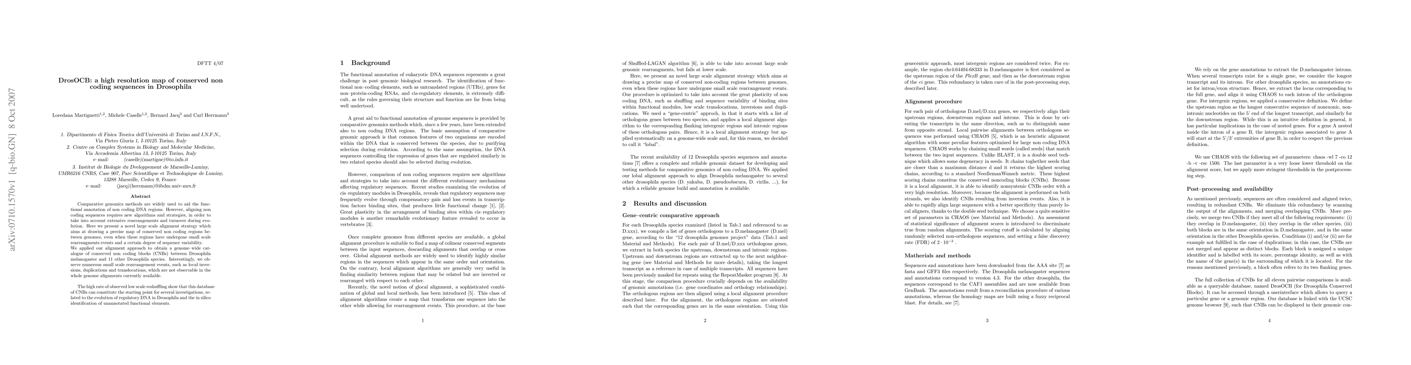 This paper presents a new alignment strategy to map conserved non-coding sequences (CNBs) across Drosophila species, revealing small-scale evolutionary rearrangements. The study identifies numerous local inversions, duplications, and translocations, providing a valuable resource for studying regulatory DNA evolution and functional element identification.