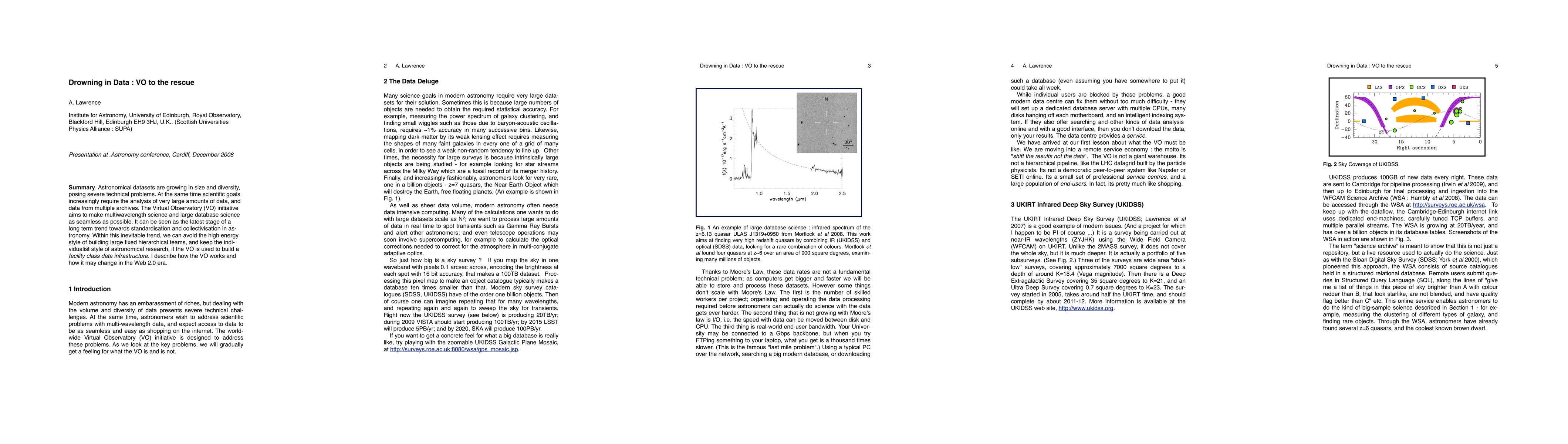 Astronomical datasets are growing in size and diversity, posing severe technical problems. At the same time scientific goals increasingly require the analysis of very large amounts of data, and data from multiple archives. The Virtual Observatory (VO) initiative aims to make multiwavelength science and large database science as seamless as possible. It can be seen as the latest stage of a long term trend towards standardisation and collectivisation in astronomy. Within this inevitable trend, we can avoid the high energy style of building large fixed hierarchical teams, and keep the individualist style of astronomical research, if the VO is used to build a facility class data infrastructure. I describe how the VO works and how it may change in the Web 2.0 era.