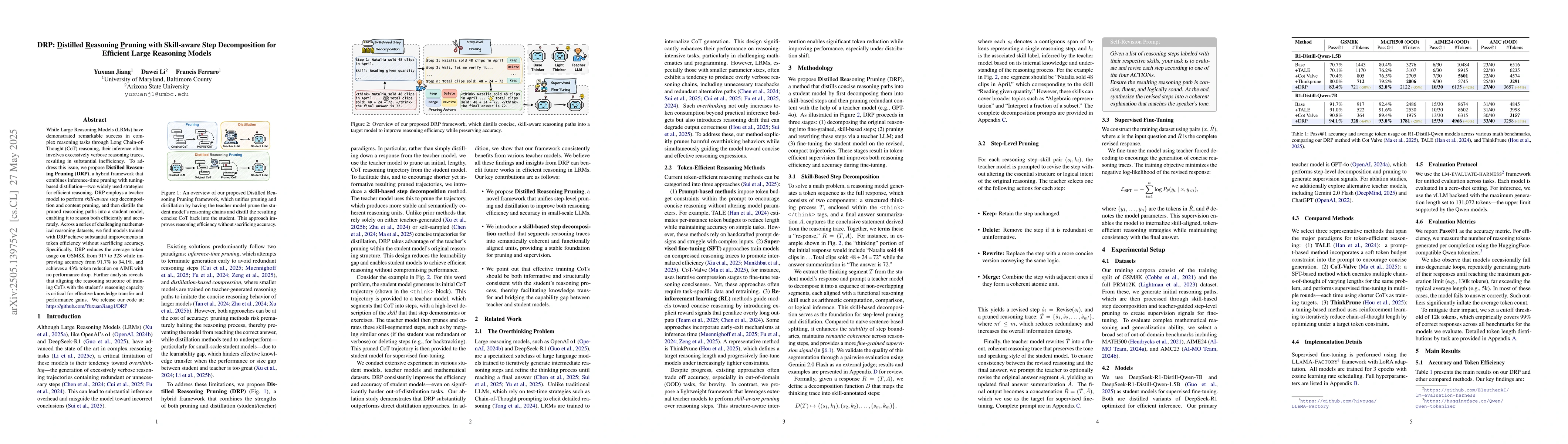 Researchers propose Distilled Reasoning Pruning, a hybrid framework combining inference-time pruning with distillation to improve the efficiency of large reasoning models without sacrificing accuracy. This approach reduces average token usage by up to 43% while maintaining performance.