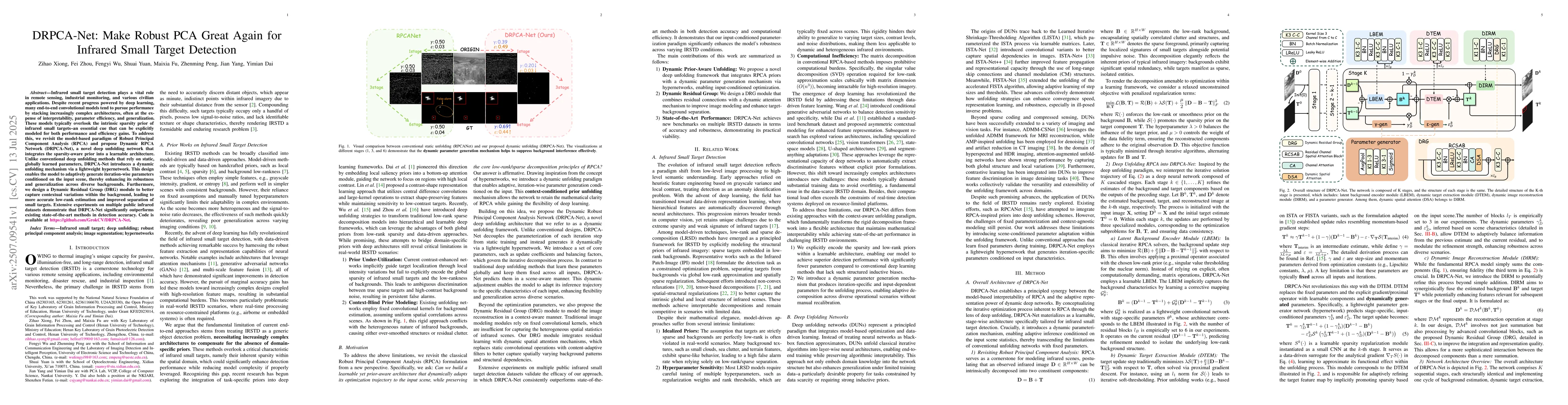 Infrared small target detection plays a vital role in remote sensing, industrial monitoring, and various civilian applications. Despite recent progress powered by deep learning, many end-to-end convolutional models tend to pursue performance by stacking increasingly complex architectures, often at the expense of interpretability, parameter efficiency, and generalization. These models typically overlook the intrinsic sparsity prior of infrared small targets--an essential cue that can be explicitly modeled for both performance and efficiency gains. To address this, we revisit the model-based paradigm of Robust Principal Component Analysis (RPCA) and propose Dynamic RPCA Network (DRPCA-Net), a novel deep unfolding network that integrates the sparsity-aware prior into a learnable architecture. Unlike conventional deep unfolding methods that rely on static, globally learned parameters, DRPCA-Net introduces a dynamic unfolding mechanism via a lightweight hypernetwork. This design enables the model to adaptively generate iteration-wise parameters conditioned on the input scene, thereby enhancing its robustness and generalization across diverse backgrounds. Furthermore, we design a Dynamic Residual Group (DRG) module to better capture contextual variations within the background, leading to more accurate low-rank estimation and improved separation of small targets. Extensive experiments on multiple public infrared datasets demonstrate that DRPCA-Net significantly outperforms existing state-of-the-art methods in detection accuracy. Code is available at https://github.com/GrokCV/DRPCA-Net.