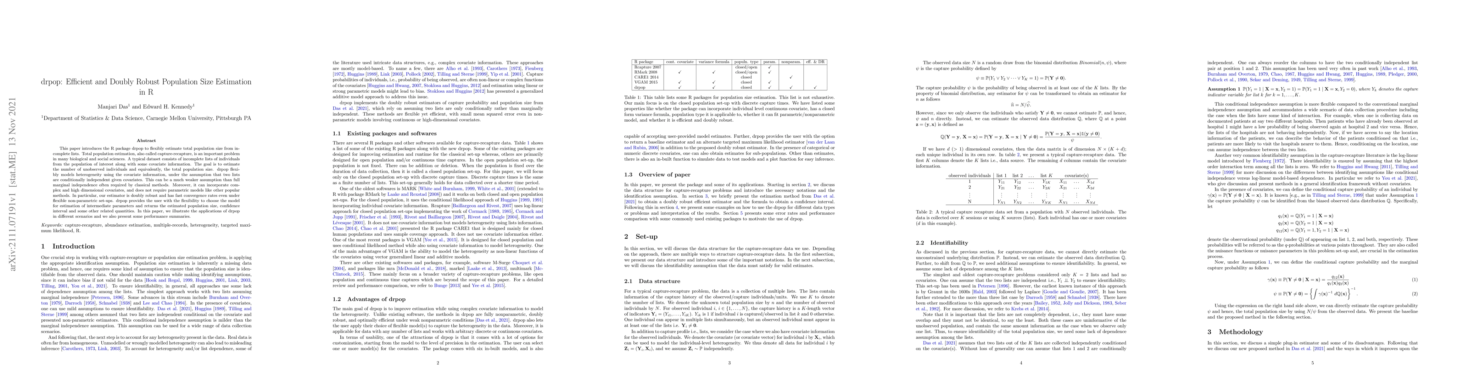 The drpop R package offers a flexible method for estimating population size from incomplete lists, providing doubly robust and fast convergence rates without requiring parametric models or full independence assumptions.
