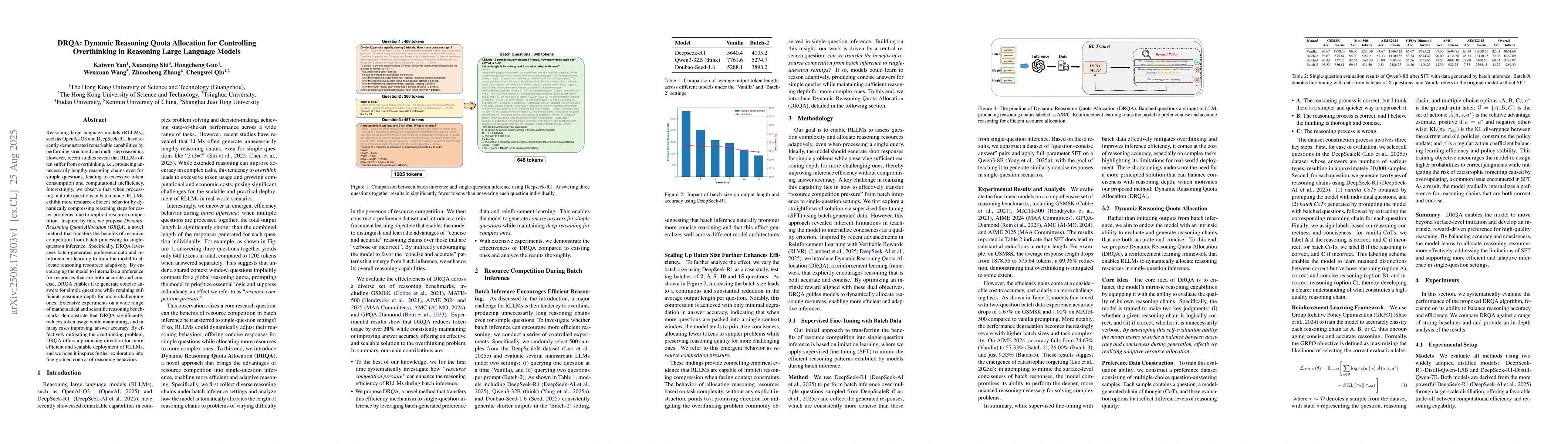 Reasoning large language models (RLLMs), such as OpenAI-O3 and DeepSeek-R1, have recently demonstrated remarkable capabilities by performing structured and multi-step reasoning. However, recent studies reveal that RLLMs often suffer from overthinking, i.e., producing unnecessarily lengthy reasoning chains even for simple questions, leading to excessive token consumption and computational inefficiency. Interestingly, we observe that when processing multiple questions in batch mode, RLLMs exhibit more resource-efficient behavior by dynamically compressing reasoning steps for easier problems, due to implicit resource competition. Inspired by this, we propose Dynamic Reasoning Quota Allocation (DRQA), a novel method that transfers the benefits of resource competition from batch processing to single-question inference. Specifically, DRQA leverages batch-generated preference data and reinforcement learning to train the model to allocate reasoning resources adaptively. By encouraging the model to internalize a preference for responses that are both accurate and concise, DRQA enables it to generate concise answers for simple questions while retaining sufficient reasoning depth for more challenging ones. Extensive experiments on a wide range of mathematical and scientific reasoning benchmarks demonstrate that DRQA significantly reduces token usage while maintaining, and in many cases improving, answer accuracy. By effectively mitigating the overthinking problem, DRQA offers a promising direction for more efficient and scalable deployment of RLLMs, and we hope it inspires further exploration into fine-grained control of reasoning behaviors.