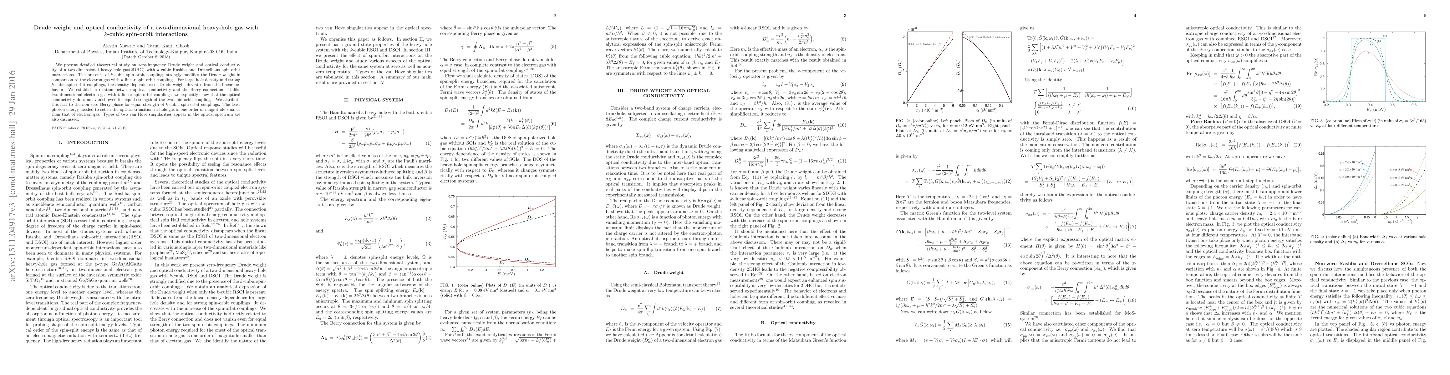 This paper investigates the Drude weight and optical conductivity in a two-dimensional heavy-hole gas with $k$-cubic spin-orbit interactions, revealing deviations from the behavior in electron gases. It finds that optical conductivity does not vanish due to a non-zero Berry phase in the presence of equal strength of $k$-cubic spin-orbit couplings.