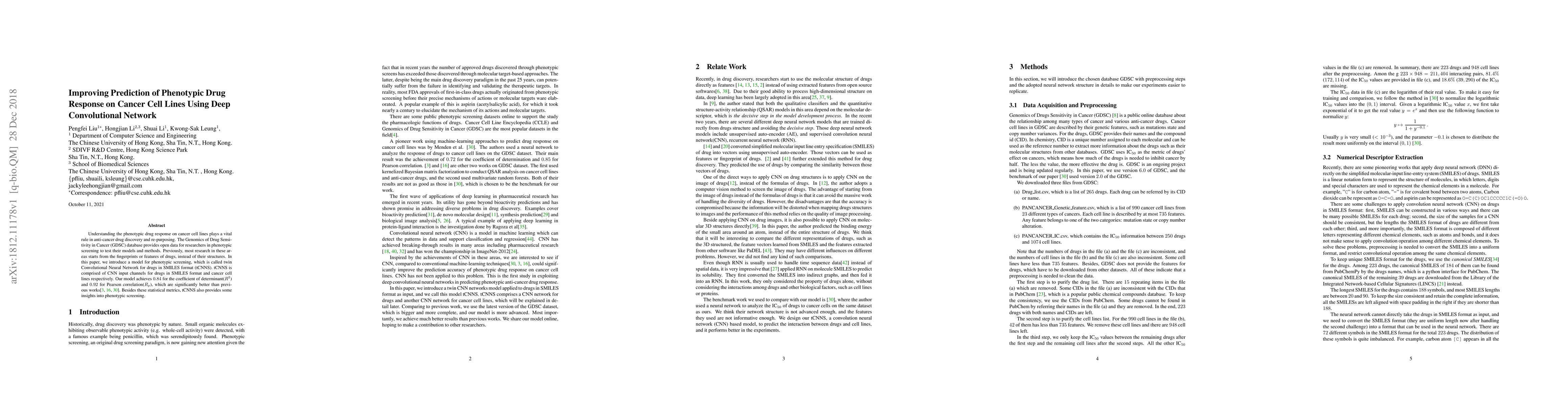 Understanding the phenotypic drug response on cancer cell lines plays a vital rule in anti-cancer drug discovery and re-purposing. The Genomics of Drug Sensitivity in Cancer (GDSC) database provides open data for researchers in phenotypic screening to test their models and methods. Previously, most research in these areas starts from the fingerprints or features of drugs, instead of their structures. In this paper, we introduce a model for phenotypic screening, which is called twin Convolutional Neural Network for drugs in SMILES format (tCNNS). tCNNS is comprised of CNN input channels for drugs in SMILES format and cancer cell lines respectively. Our model achieves $0.84$ for the coefficient of determinant($R^2$) and $0.92$ for Pearson correlation($R_p$), which are significantly better than previous works\cite{ammad2014integrative,haider2015copula,menden2013machine}. Besides these statistical metrics, tCNNS also provides some insights into phenotypic screening.