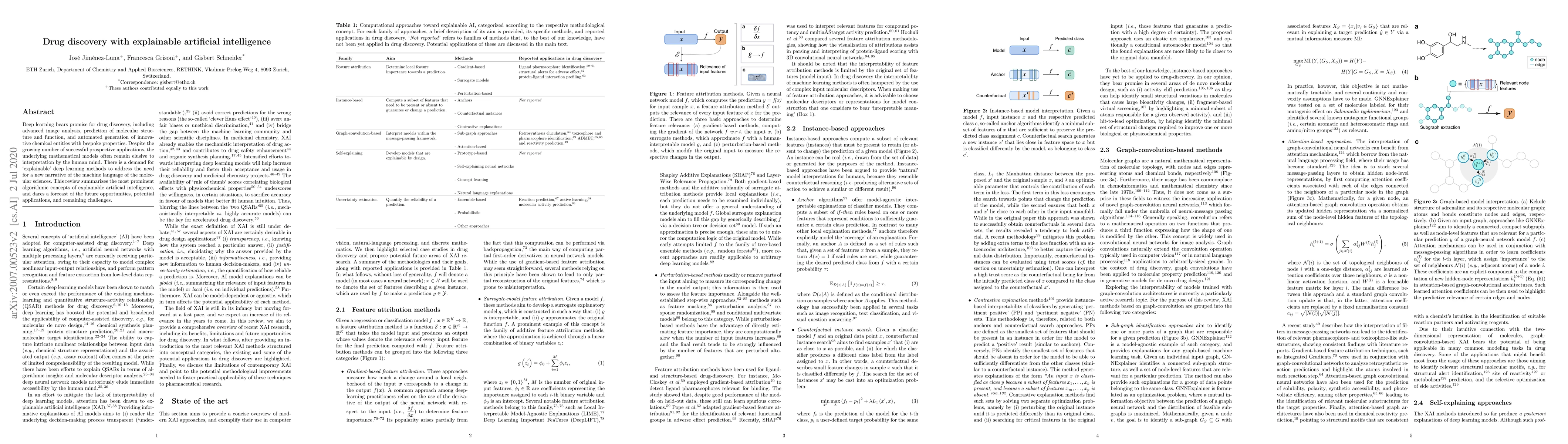 Deep learning bears promise for drug discovery, including advanced image analysis, prediction of molecular structure and function, and automated generation of innovative chemical entities with bespoke properties. Despite the growing number of successful prospective applications, the underlying mathematical models often remain elusive to interpretation by the human mind. There is a demand for 'explainable' deep learning methods to address the need for a new narrative of the machine language of the molecular sciences. This review summarizes the most prominent algorithmic concepts of explainable artificial intelligence, and dares a forecast of the future opportunities, potential applications, and remaining challenges.