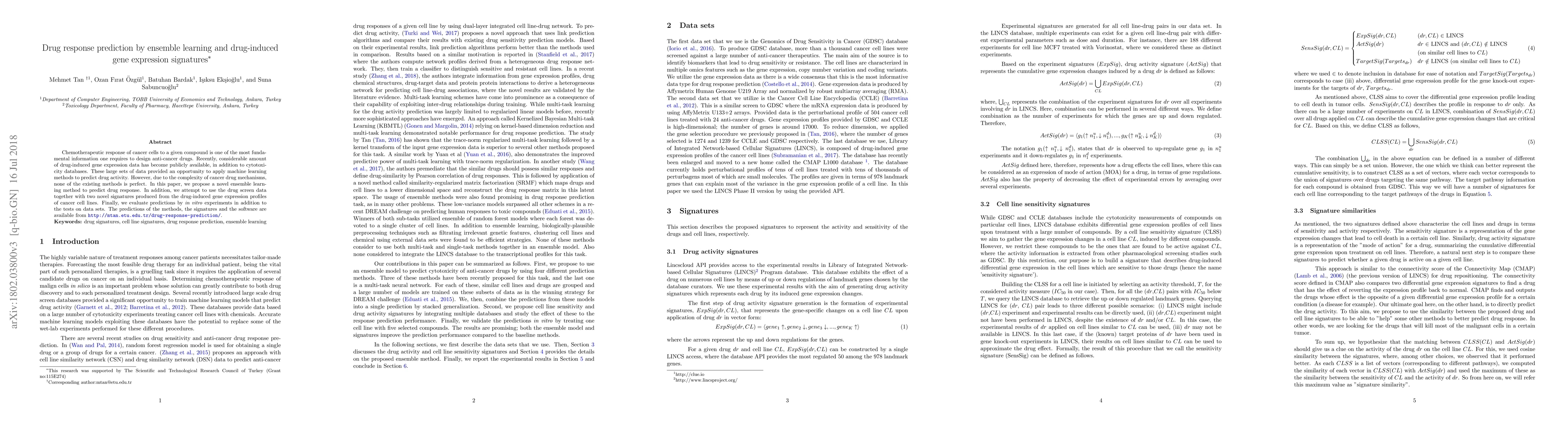This paper proposes an ensemble learning method to predict chemotherapeutic response of cancer cells to compounds by integrating various predictors and drug-induced gene expression signatures. The ensemble approach, which combines different methods and data subsets, demonstrates improved performance over individual predictors, validated by both in vitro experiments and dataset tests.