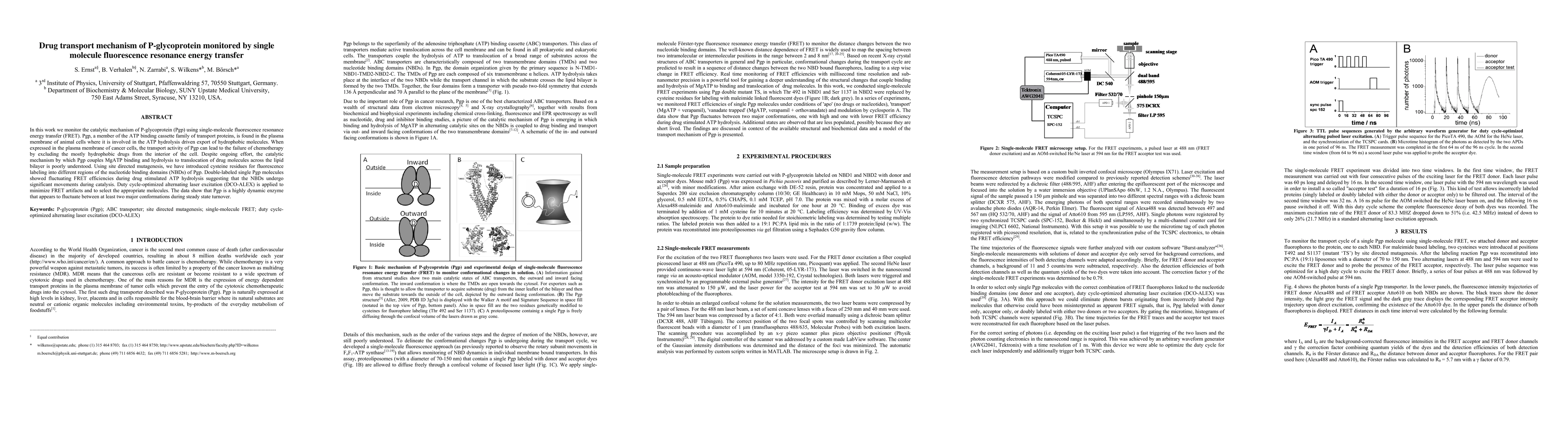 This study employs single-molecule fluorescence resonance energy transfer (FRET) to monitor the catalytic mechanism of P-glycoprotein (Pgp), revealing significant movements of its nucleotide binding domains (NBDs) during ATP hydrolysis and drug transport. The findings suggest Pgp fluctuates between at least two major conformations, highlighting its dynamic nature during catalysis.
