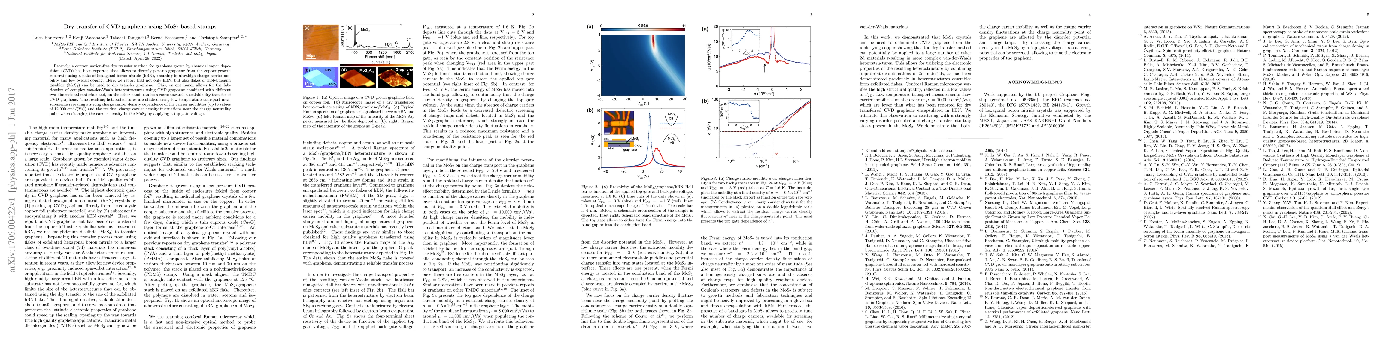 Recently, a contamination-free dry transfer method for graphene grown by chemical vapor deposition (CVD) has been reported that allows to directly pick-up graphene from the copper growth substrate using a flake of hexagonal boron nitride (hBN), resulting in ultrahigh charge carrier mobility and low overall doping. Here, we report that not only hBN, but also flakes of molybdenum disulfide (MoS$_2$) can be used to dry transfer graphene. This, on one hand, allows for the fabrication of complex van-der-Waals heterostructures using CVD graphene combined with different two-dimensional materials and, on the other hand, can be a route towards a scalable dry transfer of CVD graphene. The resulting heterostructures are studied using low temperature transport measurements revealing a strong charge carrier density dependence of the carrier mobilities (up to values of 12,000 cm$^2$/(Vs)) and the residual charge carrier density fluctuations near the charge neutrality point when changing the carrier density in the MoS$_2$ by applying a top gate voltage.