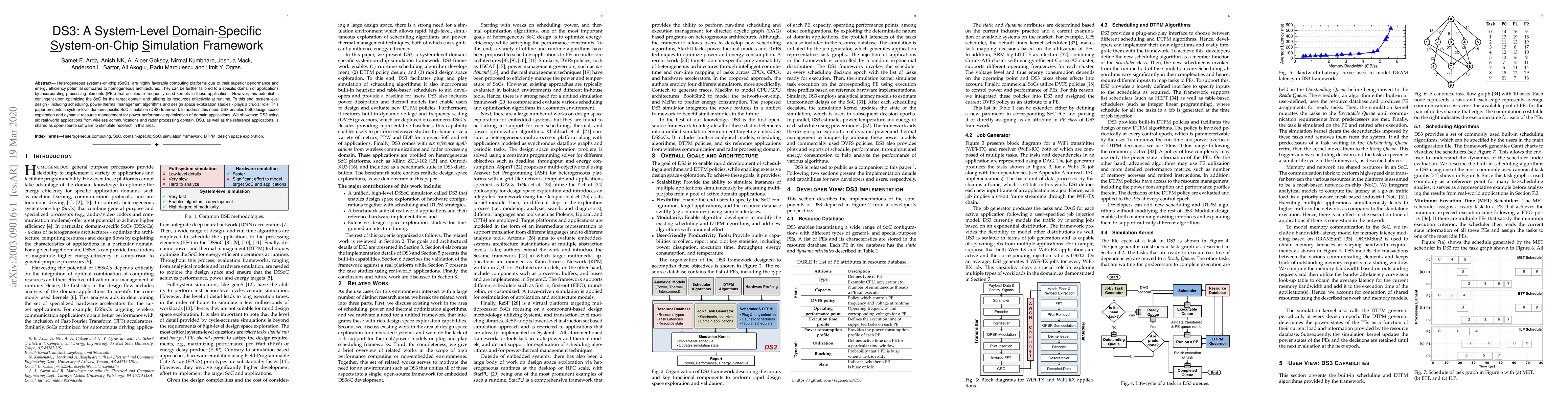 A new system-level simulation framework called DS3 is presented to optimize power-performance for domain-specific SoCs, enabling dynamic resource management and design space exploration for heterogeneous systems-on-chip.