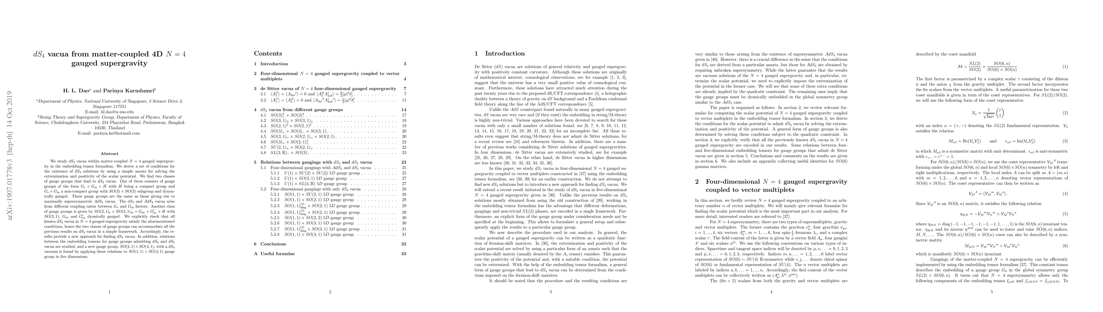 This paper explores $dS_4$ vacua in matter-coupled $N=4$ gauged supergravity, identifying two classes of gauge groups that yield these vacua. The study uses an embedding tensor formalism and confirms existing $dS_4$ solutions, providing a framework for new vacuum discoveries and exploring relationships between gauge groups that produce $dS_4$ and $dS_5$ vacua.