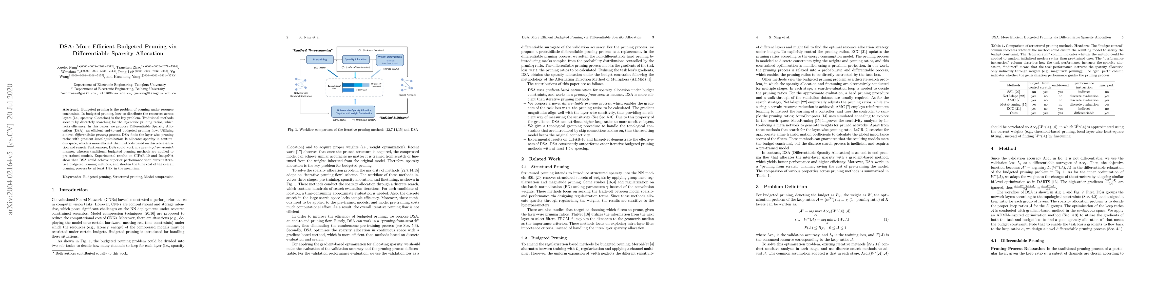 This paper introduces Differentiable Sparsity Allocation (DSA) to efficiently manage resource constraints in model pruning by optimizing layer-wise pruning ratios through gradient-based optimization. DSA outperforms traditional discrete methods by allocating sparsity in continuous space, achieving better performance and reducing pruning time by at least 1.5x.