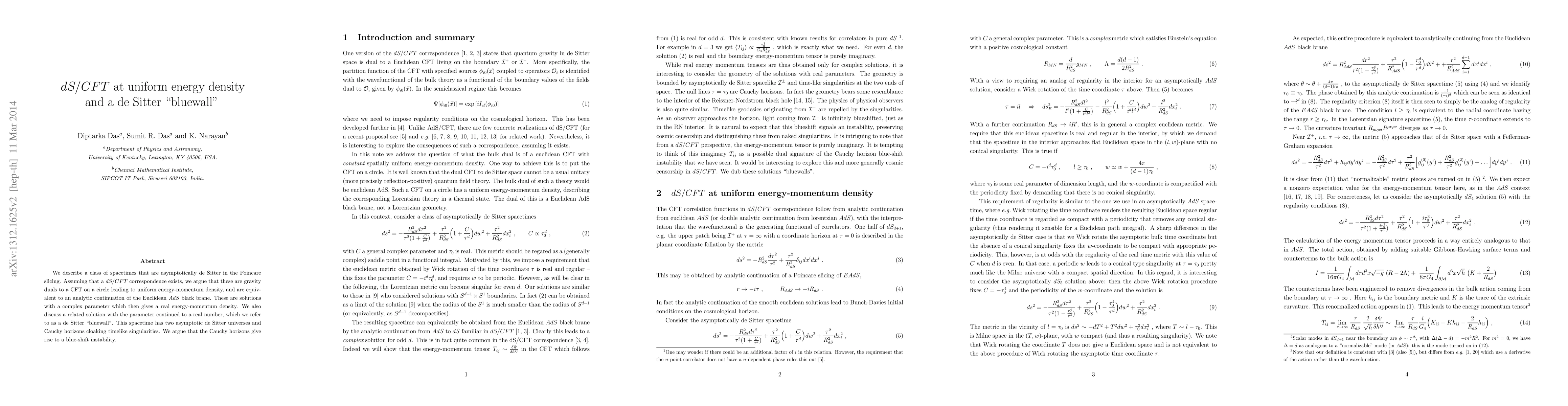 We describe a class of spacetimes that are asymptotically de Sitter in the Poincare slicing. Assuming that a dS/CFT correspondence exists, we argue that these are gravity duals to a CFT on a circle leading to uniform energy-momentum density, and are equivalent to an analytic continuation of the Euclidean AdS black brane. These are solutions with a complex parameter which then gives a real energy-momentum density. We also discuss a related solution with the parameter continued to a real number, which we refer to as a de Sitter "bluewall". This spacetime has two asymptotic de Sitter universes and Cauchy horizons cloaking timelike singularities. We argue that the Cauchy horizons give rise to a blue-shift instability.