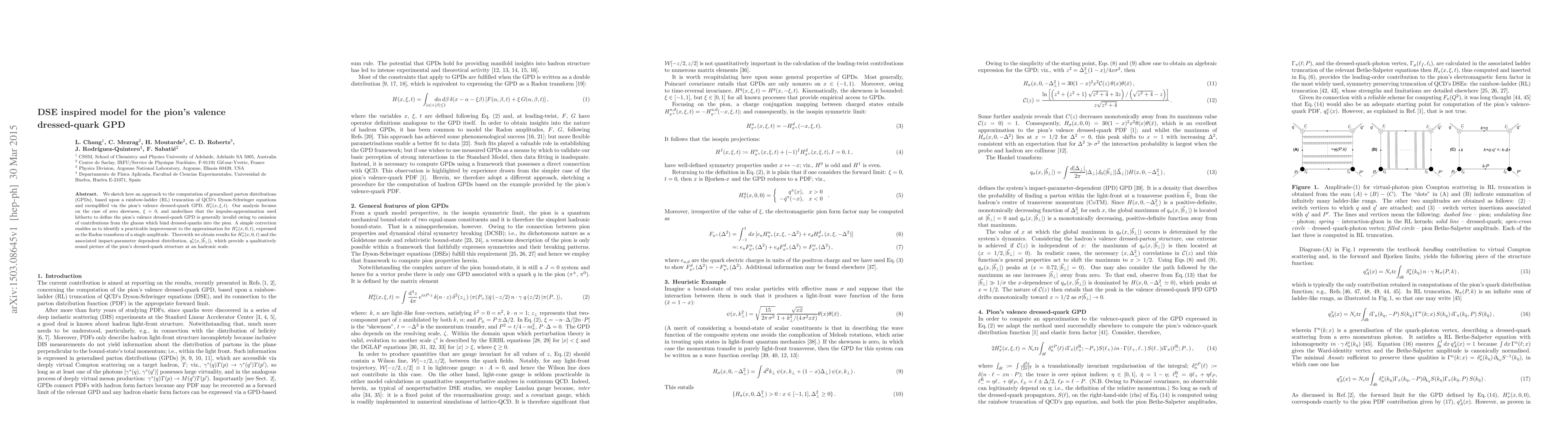 This paper proposes a new approach to calculating the pion's valence dressed-quark Generalized Parton Distribution, correcting for gluon contributions that were previously omitted, and obtaining results on the distribution of quarks within the pion.