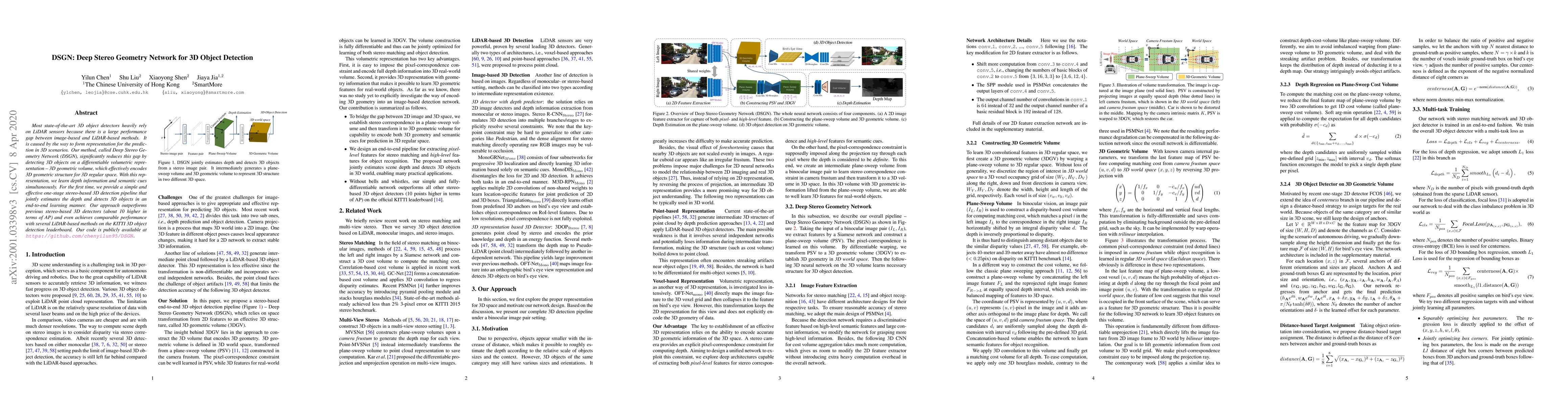 The Deep Stereo Geometry Network (DSGN) reduces the performance gap between image-based and LiDAR-based 3D object detectors by utilizing a differentiable volumetric representation that encodes 3D geometric structures. This method outperforms previous stereo-based detectors and achieves comparable results with LiDAR-based methods on the KITTI dataset.