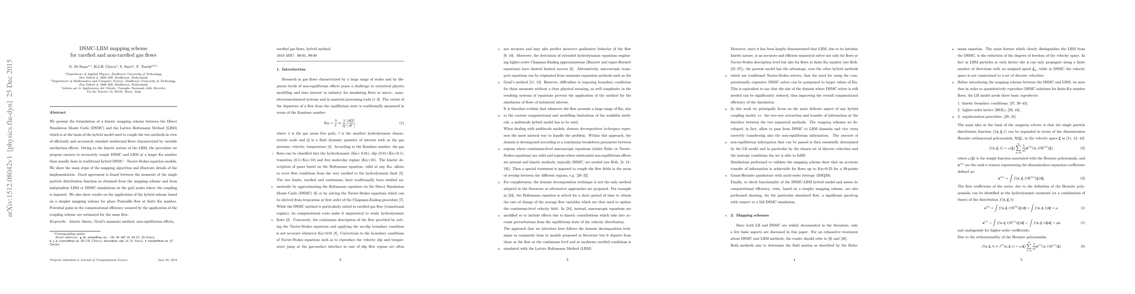 This paper formulates a kinetic mapping scheme between DSMC and LBM to efficiently simulate isothermal gas flows with variable rarefaction, achieving accurate coupling at higher Kn numbers than traditional methods. The hybrid model demonstrates good agreement between mapped moments and independent simulations, and computational efficiency gains are estimated for plane Poiseuille flow.