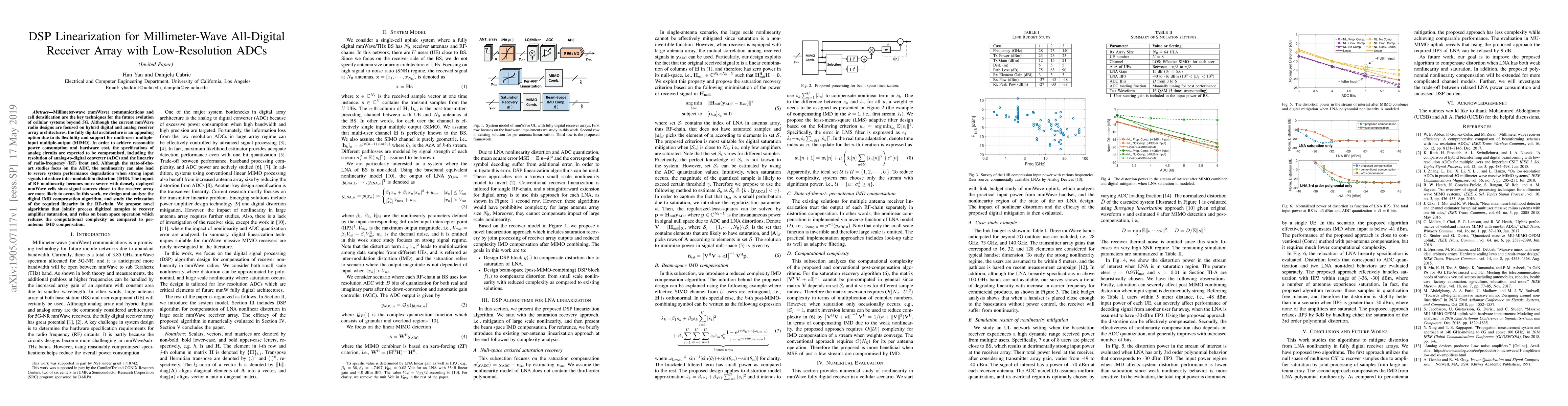 This paper proposes a digital IMD compensation algorithm to improve system performance in millimeter-wave all-digital receiver arrays with low-resolution ADCs, reducing the need for high linearity in the RF chain.