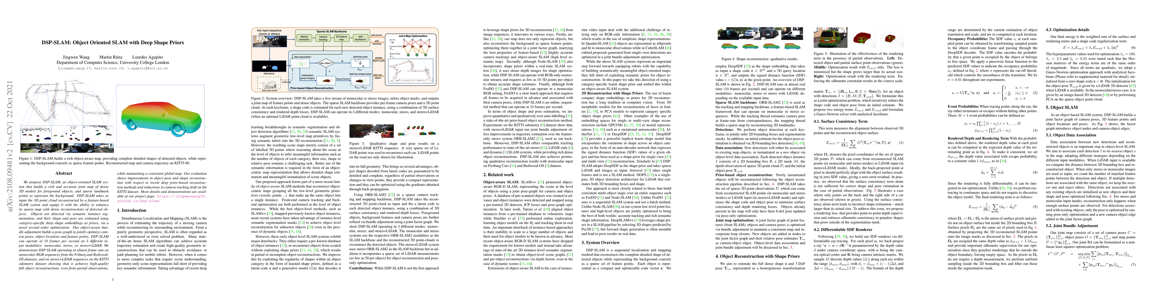 DSP-SLAM is an object-oriented SLAM system that enhances sparse maps with dense 3D reconstructions of detected objects using deep shape priors. It achieves high-quality full object reconstructions and maintains a consistent global map, demonstrating improvements over recent deep prior-based methods and reduced camera tracking drift.