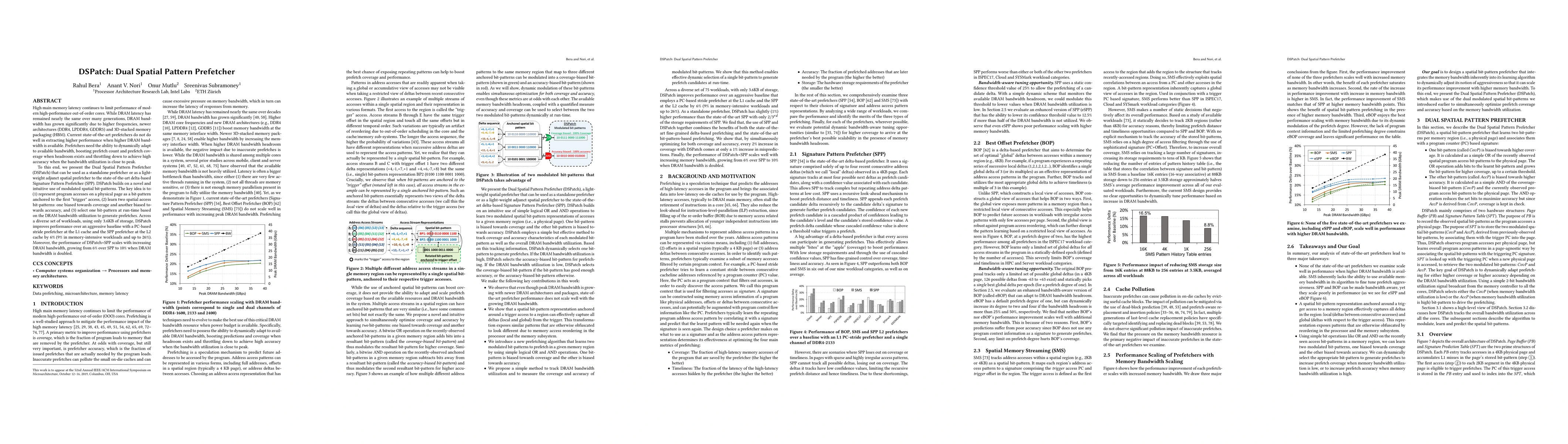 DSPatch is a novel prefetcher that dynamically adapts to DRAM bandwidth to optimize memory performance. It uses modulated spatial bit-patterns to generate prefetches, improving performance by up to 26% in memory-intensive workloads compared to baseline prefetchers.