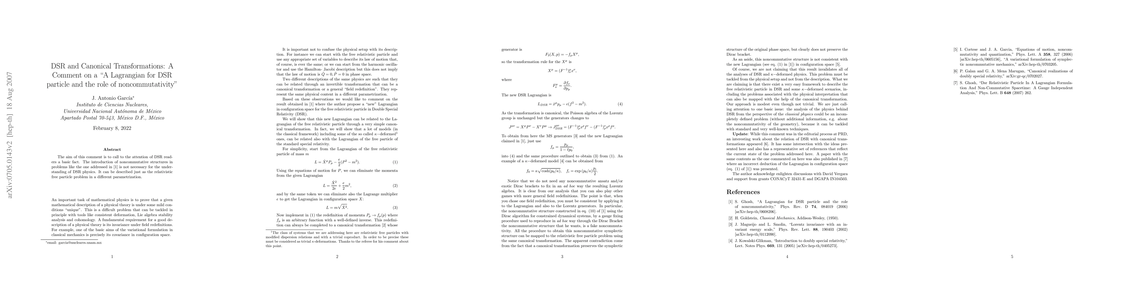The aim of this comment is to call to the attention of DSR readers a basic fact. The introduction of noncommutative structures in problems like the one addressed in [1] is not necessary for the understanding of DSR physics. It can be described just as the relativistic free particle problem in a different parametrization.