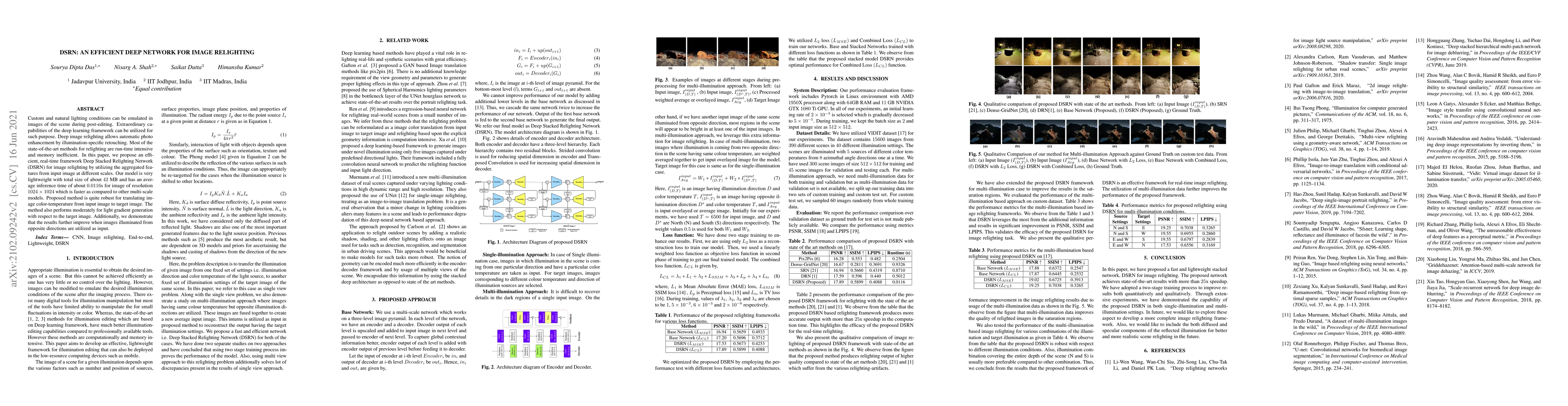 Researchers developed a lightweight deep learning model called Deep Stacked Relighting Network (DSRN) for efficient image relighting, achieving real-time performance with high-quality results.
