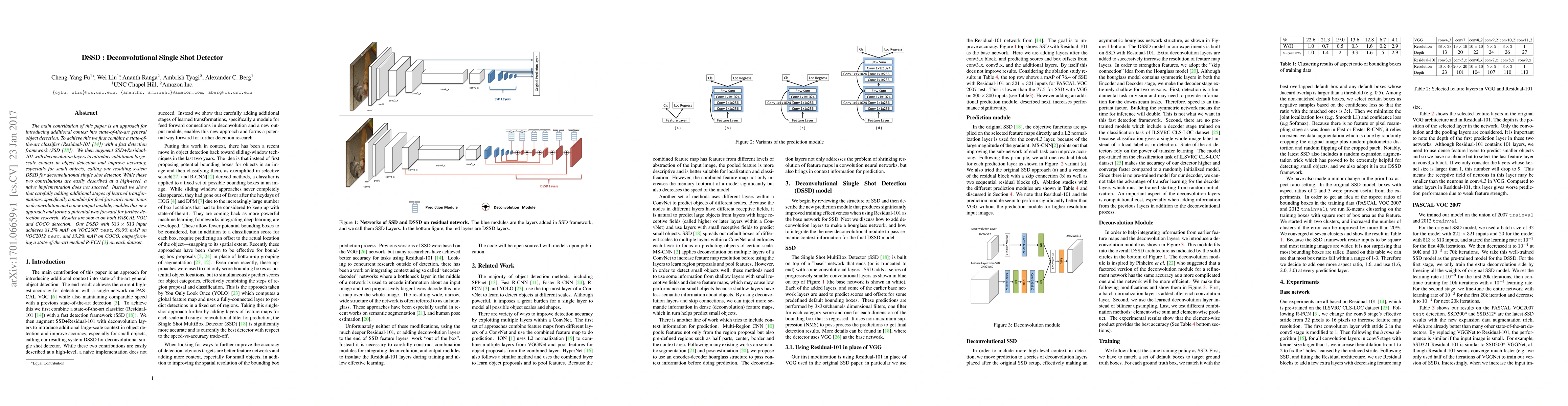 Researchers introduced DSSD, a novel object detection system that combines state-of-the-art features with deconvolutional layers to improve accuracy for small objects, achieving 81.5% mAP on VOC2007 test.