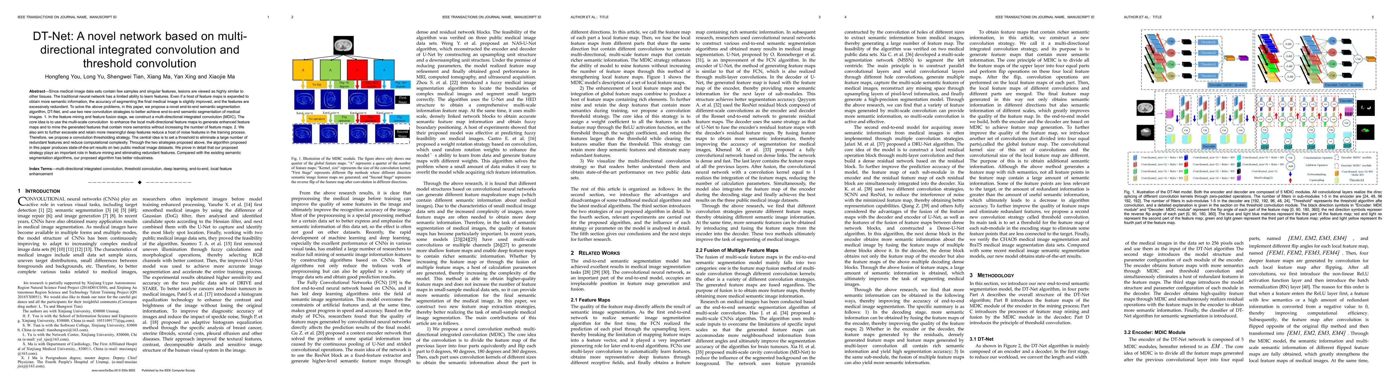 This paper proposes a novel algorithm, DT-Net, that uses multi-directional integrated convolution and threshold convolution to improve the performance of semantic segmentation in medical images, achieving state-of-the-art results on public datasets.