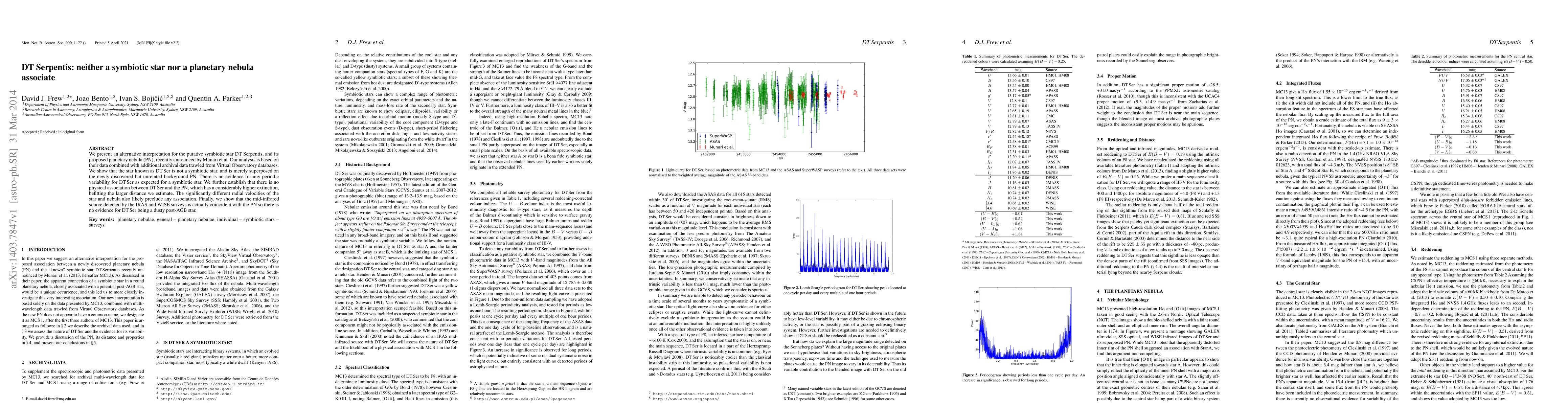 DT Serpentis is reinterpreted as not being a symbiotic star nor associated with a nearby planetary nebula, based on combined data analysis. Instead, it is an unrelated background star, while the planetary nebula shows higher extinction and different radial velocity, confirming no physical association.