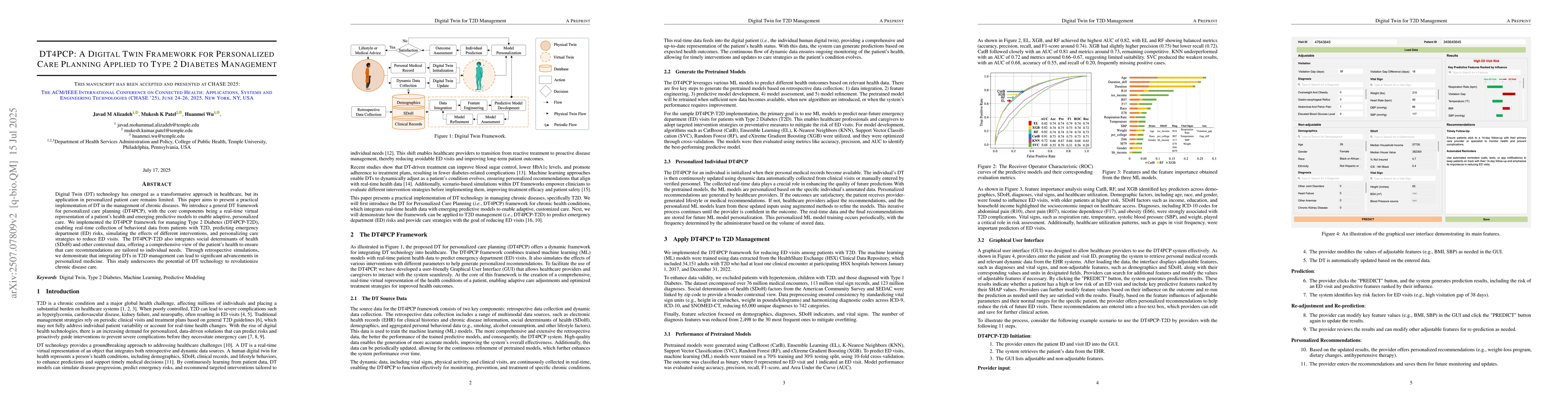 Digital Twin (DT) technology has emerged as a transformative approach in healthcare, but its application in personalized patient care remains limited. This paper aims to present a practical implementation of DT in the management of chronic diseases. We introduce a general DT framework for personalized care planning (DT4PCP), with the core components being a real-time virtual representation of a patient's health and emerging predictive models to enable adaptive, personalized care. We implemented the DT4PCP framework for managing Type 2 Diabetes (DT4PCP-T2D), enabling real-time collection of behavioral data from patients with T2D, predicting emergency department (ED) risks, simulating the effects of different interventions, and personalizing care strategies to reduce ED visits. The DT4PCP-T2D also integrates social determinants of health (SDoH) and other contextual data, offering a comprehensive view of the patient's health to ensure that care recommendations are tailored to individual needs. Through retrospective simulations, we demonstrate that integrating DTs in T2D management can lead to significant advancements in personalized medicine. This study underscores the potential of DT technology to revolutionize chronic disease care.