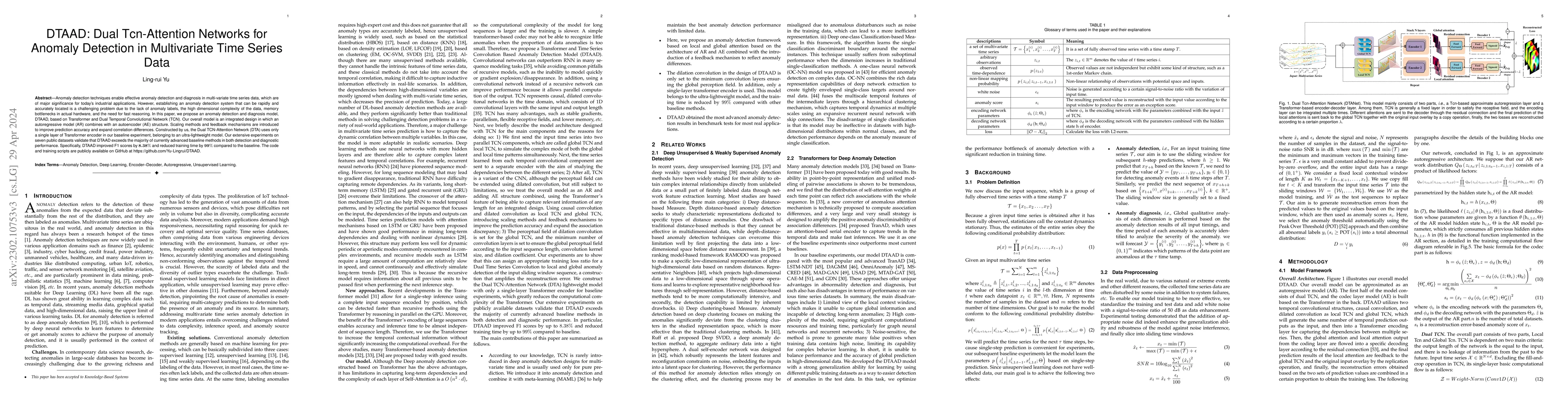 The paper introduces DTAAD, a lightweight anomaly detection model utilizing Dual TCN-Attention Networks, which combines Transformer and Dual Temporal Convolutional Networks for enhanced detection and diagnosis in multivariate time series data. Experiments demonstrate significant improvements in F1 scores and a dramatic reduction in training time compared to advanced baselines.