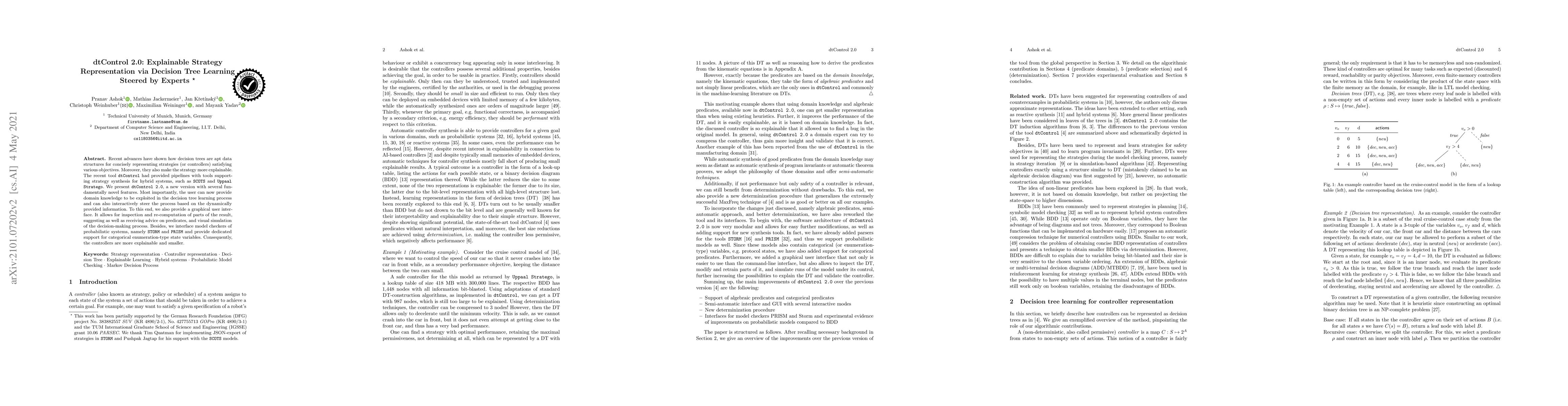 dtControl 2.0 introduces an enhanced decision tree learning framework that incorporates expert-guided strategy synthesis and a graphical interface, facilitating interactive refinement and improved explainability for hybrid system controllers. It also interfaces with probabilistic model checkers and supports categorical state variables.