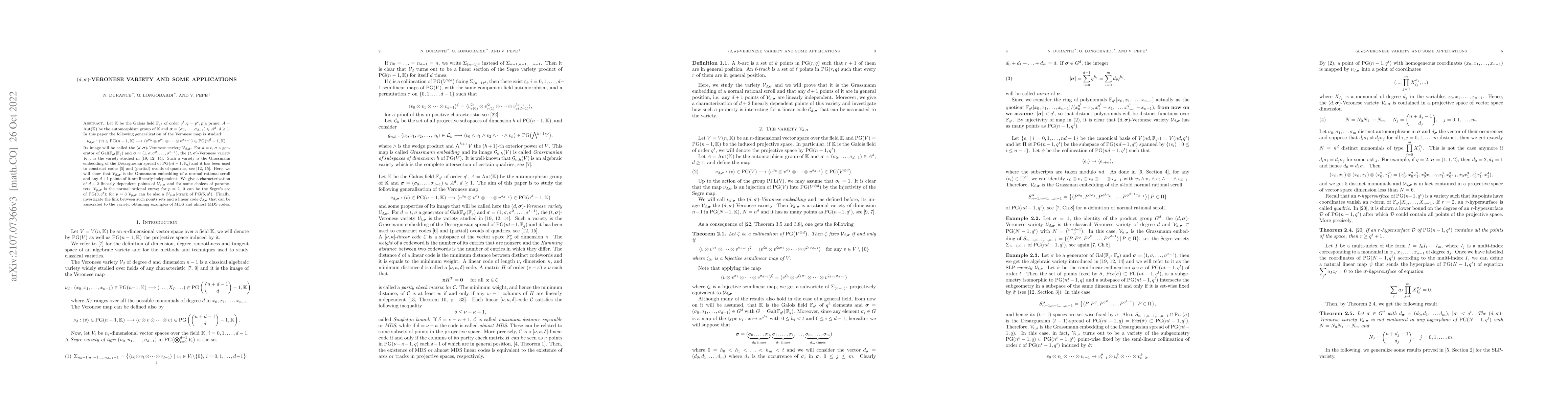 Let $\mathbb{K}$ be the Galois field $\mathbb{F}_{q^t}$ of order $q^t, q=p^e, p$ a prime, $A=\mathrm{Aut}(\mathbb{K})$ be the automorphism group of $\mathbb{K}$ and $\boldsymbol{\sigma}=(\sigma_0,\ldots, \sigma_{d-1}) \in A^d$, $d \geq 1$. In this paper the following generalization of the Veronese map is studied: $$ \nu_{d,\boldsymbol{\sigma}} : \langle v\rangle \in \mathrm{PG}(n-1,\mathbb{K}) \longrightarrow \langle v^{\sigma_0} \otimes v^{\sigma_1} \otimes \cdots \otimes v^{\sigma_{d-1}}\rangle \in \mathrm{PG} (n^d-1,\mathbb{K} ). $$ Its image will be called the $(d,\boldsymbol{\sigma})$-$Veronese$ $variety$ $\mathcal{V}_{d,\boldsymbol{\sigma}}$. Here, we will show that $\mathcal{V}_{d,\boldsymbol{\sigma}}$ is the Grassmann embedding of a normal rational scroll and any $d+1$ points of it are linearly independent. We give a characterization of $d+2$ linearly dependent points of $\mathcal{V}_{d,\boldsymbol{\sigma}}$ and for some choices of parameters, $\mathcal{V}_{p,\boldsymbol{\sigma}}$ is the normal rational curve; for $p=2$, it can be the Segre's arc of $\mathrm{PG}(3,q^t)$; for $p=3$ $\mathcal{V}_{p,\boldsymbol{\sigma}}$ can be also a $|\mathcal{V}_{p,\boldsymbol{\sigma}}|$-track of $\mathrm{PG}(5,q^t)$. Finally, investigate the link between such points sets and a linear code $\mathcal{C}_{d,\boldsymbol{\sigma}}$ that can be associated to the variety, obtaining examples of MDS and almost MDS codes.