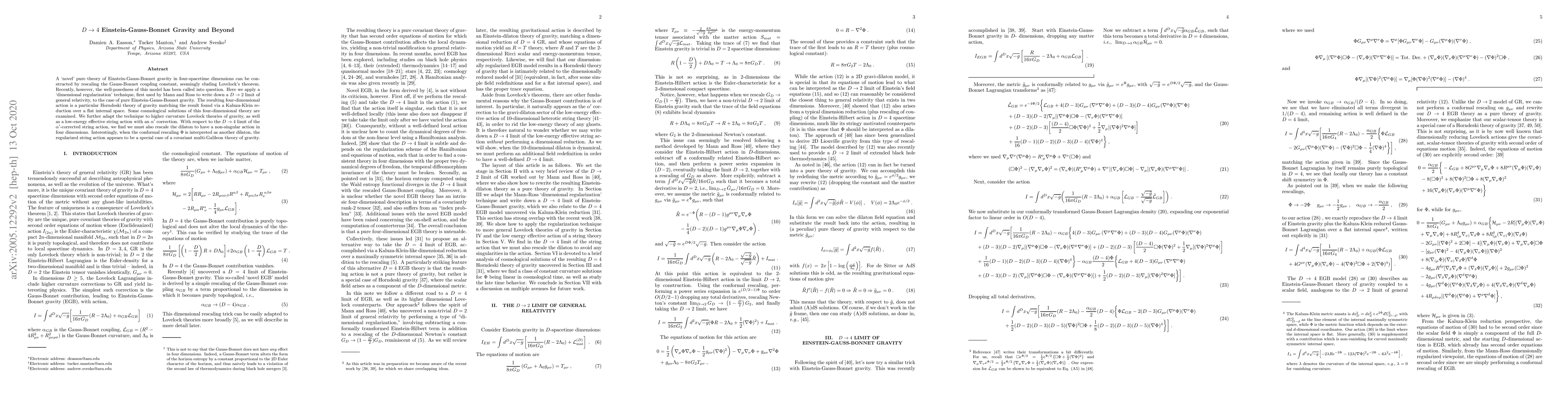 This paper explores a novel pure Einstein-Gauss-Bonnet gravity theory in four dimensions using a dimensional regularization technique, revealing it as a specific Horndeski theory. It also extends the method to higher curvature Lovelock theories and an $\alpha'$-corrected string action, requiring a rescaled dilaton for non-singularity in four dimensions.