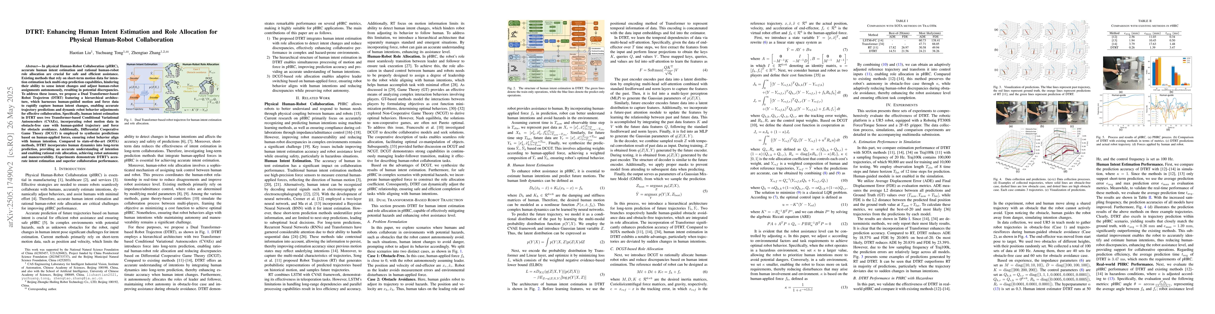 DTRT proposes a Dual Transformer-based Robot Trajectron that accurately estimates human intent and allocates roles for safe and efficient physical Human-Robot Collaboration, outperforming state-of-the-art methods.