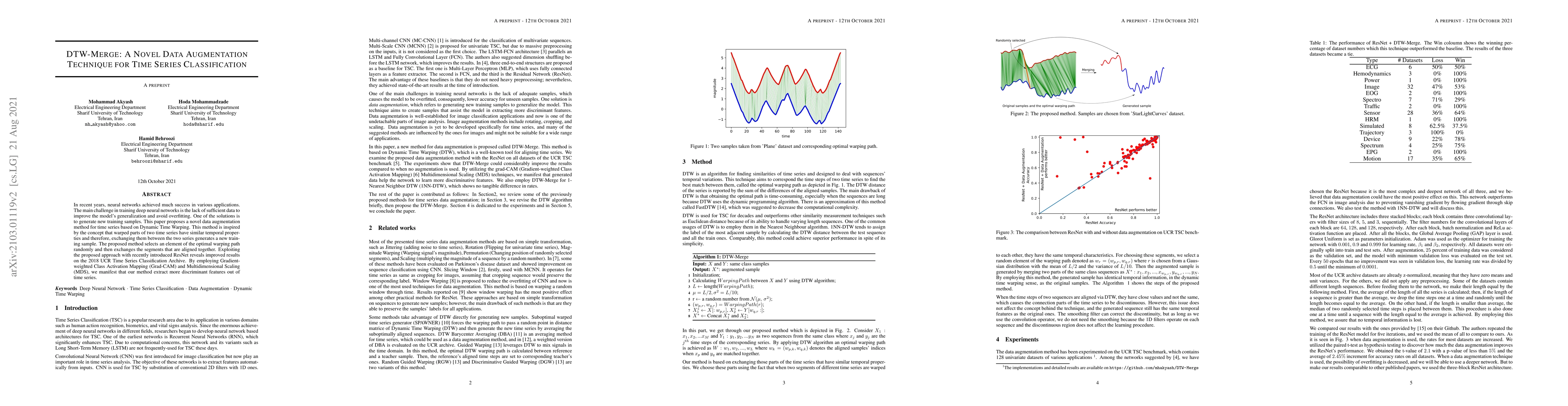 This paper introduces DTW-Merge, a novel data augmentation technique for time series classification that leverages Dynamic Time Warping to generate new training samples by swapping segments between time series. The method enhances model generalization and reduces overfitting, leading to improved results on the UCR Time Series Classification Archive when used with ResNet.