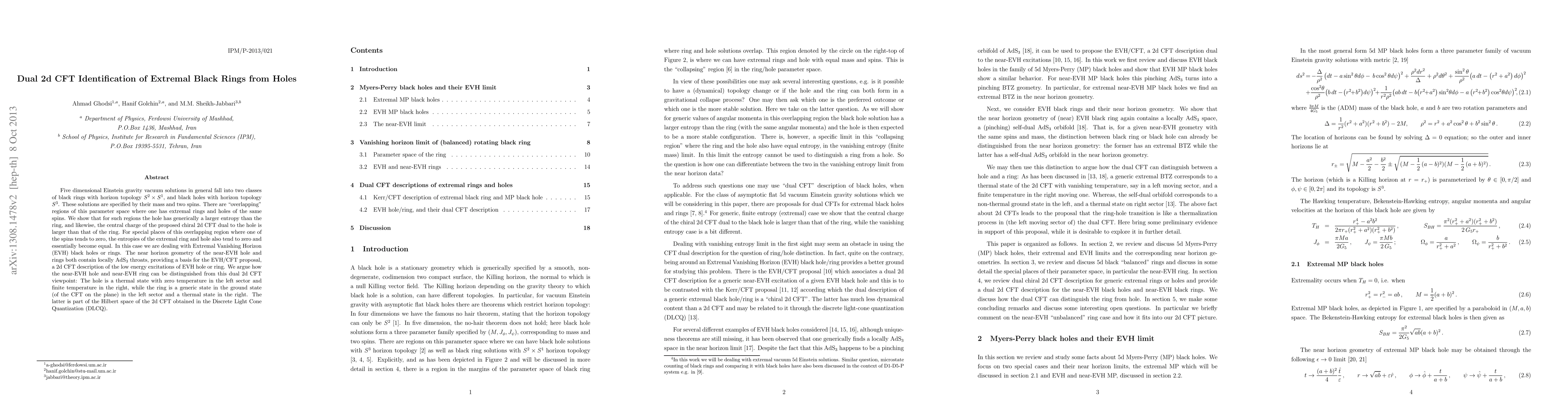 This paper identifies extremal black rings and holes in five-dimensional Einstein gravity through dual two-dimensional Conformal Field Theory (CFT) analysis. It shows that in overlapping regions of parameter space, holes generally have larger entropy and central charge compared to rings, except in special cases where both entropy and central charge tend to zero, termed Extremal Vanishing Horizon (EVH) black holes or rings. The near-EVH hole and ring are distinguished by their CFT descriptions, with the hole being a thermal state and the ring a generic ground state.