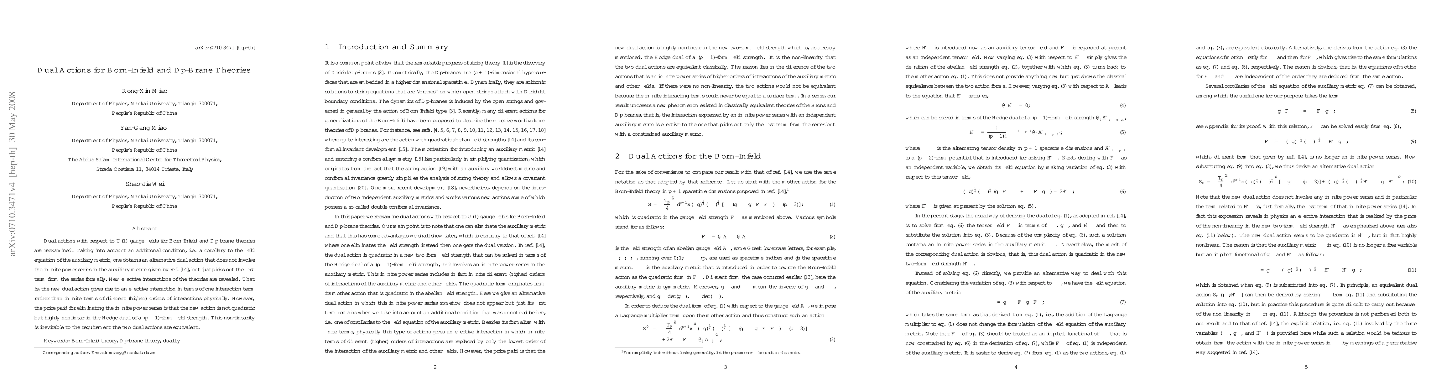 Dual actions with respect to U(1) gauge fields for Born-Infeld and $Dp$-brane theories are reexamined. Taking into account an additional condition, i.e. a corollary to the field equation of the auxiliary metric, one obtains an alternative dual action that does not involve the infinite power series in the auxiliary metric given by ref. \cite{s14}, but just picks out the first term from the series formally. New effective interactions of the theories are revealed. That is, the new dual action gives rise to an effective interaction in terms of one interaction term rather than infinite terms of different (higher) orders of interactions physically. However, the price paid for eliminating the infinite power series is that the new action is not quadratic but highly nonlinear in the Hodge dual of a $(p-1)$-form field strength. This non-linearity is inevitable to the requirement the two dual actions are equivalent.