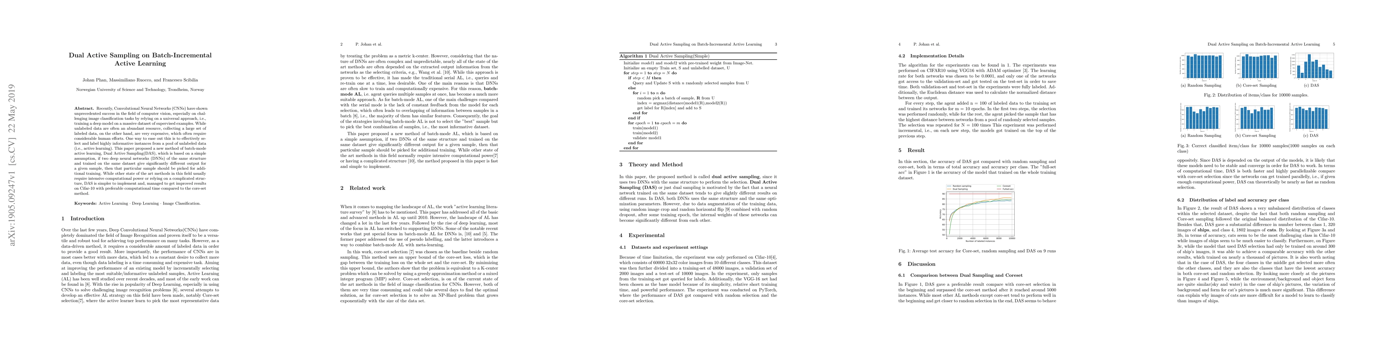A new method called Dual Active Sampling (DAS) is proposed to select informative instances from unlabeled data for active learning in image classification tasks. DAS outperforms other methods with improved results on CIFAR-10 while requiring less computational power.
