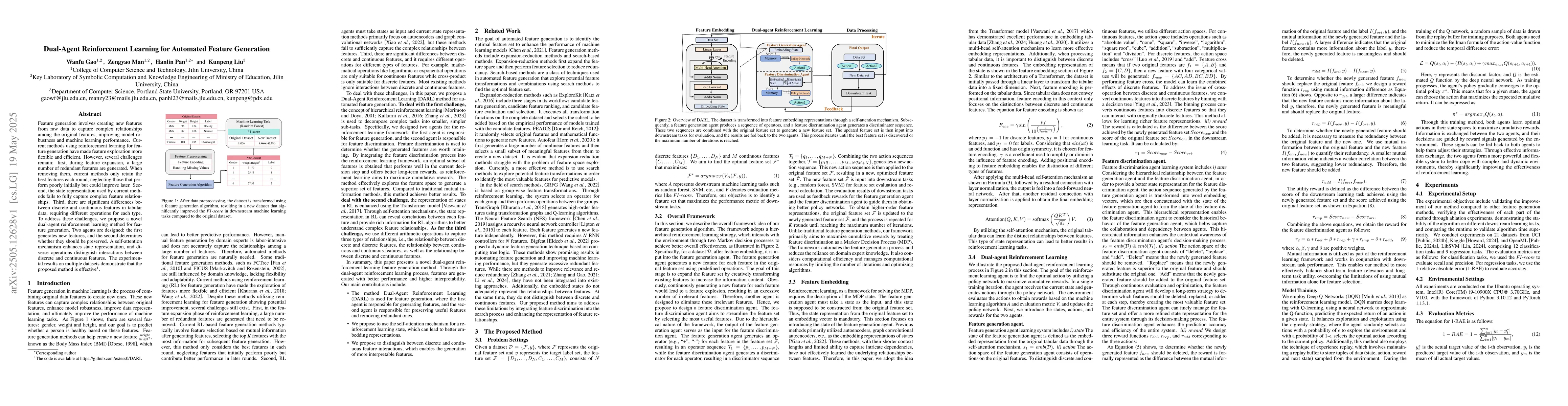 A novel dual-agent reinforcement learning method is proposed to address challenges in automated feature generation, including redundancy and incomplete state representation, and improves machine learning performance on multiple datasets.