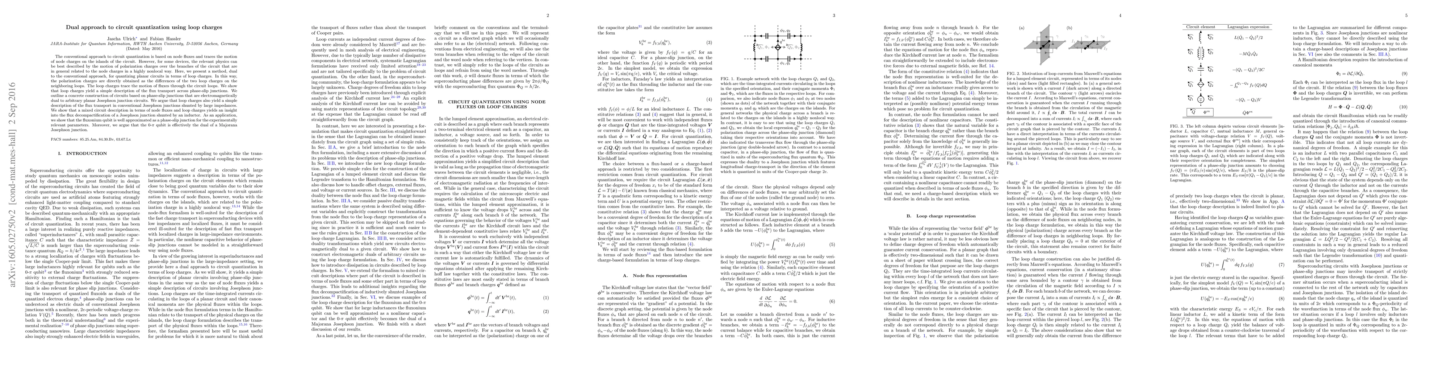 The conventional approach to circuit quantization is based on node fluxes and traces the motion of node charges on the islands of the circuit. However, for some devices, the relevant physics can be best described by the motion of polarization charges over the branches of the circuit that are in general related to the node charges in a highly nonlocal way. Here, we present a method, dual to the conventional approach, for quantizing planar circuits in terms of loop charges. In this way, the polarization charges are directly obtained as the differences of the two loop charges on the neighboring loops. The loop charges trace the motion of fluxes through the circuit loops. We show that loop charges yield a simple description of the flux transport across phase-slip junctions. We outline a concrete construction of circuits based on phase-slip junctions that are electromagnetically dual to arbitrary planar Josephson junction circuits. We argue that loop charges also yield a simple description of the flux transport in conventional Josephson junctions shunted by large impedances. We show that a mixed circuit description in terms of node fluxes and loop charges yields an insight into the flux decompactification of a Josephson junction shunted by an inductor. As an application, we show that the fluxonium qubit is well approximated as a phase-slip junction for the experimentally relevant parameters. Moreover, we argue that the $0$-$\pi$ qubit is effectively the dual of a Majorana Josephson junction.