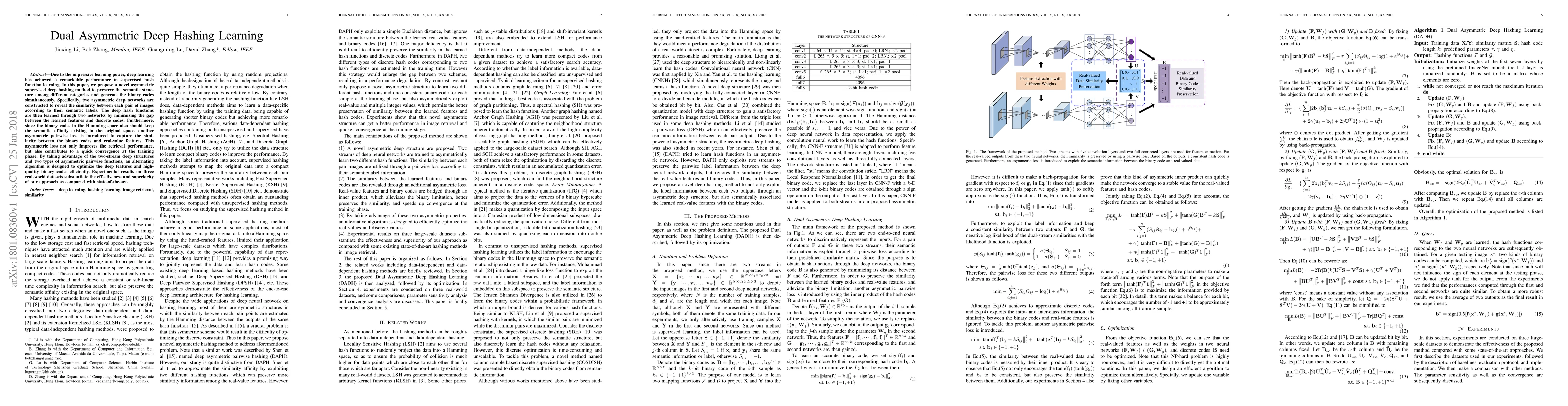 This paper proposes a dual asymmetric deep hashing method that utilizes two asymmetric deep networks to generate binary codes while preserving semantic structures across categories. The approach enhances retrieval performance and accelerates training through an alternating optimization algorithm, outperforming state-of-the-art methods on multiple datasets.