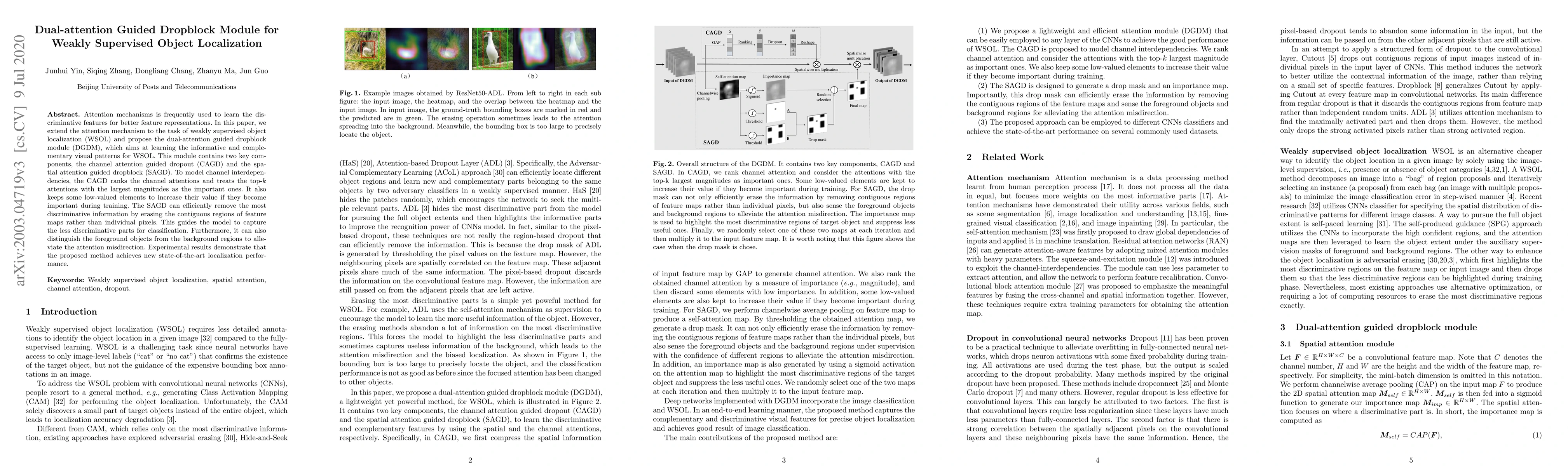 Researchers propose a new approach to weakly supervised object localization using a dual-attention guided dropblock module, achieving state-of-the-art performance in object localization tasks.